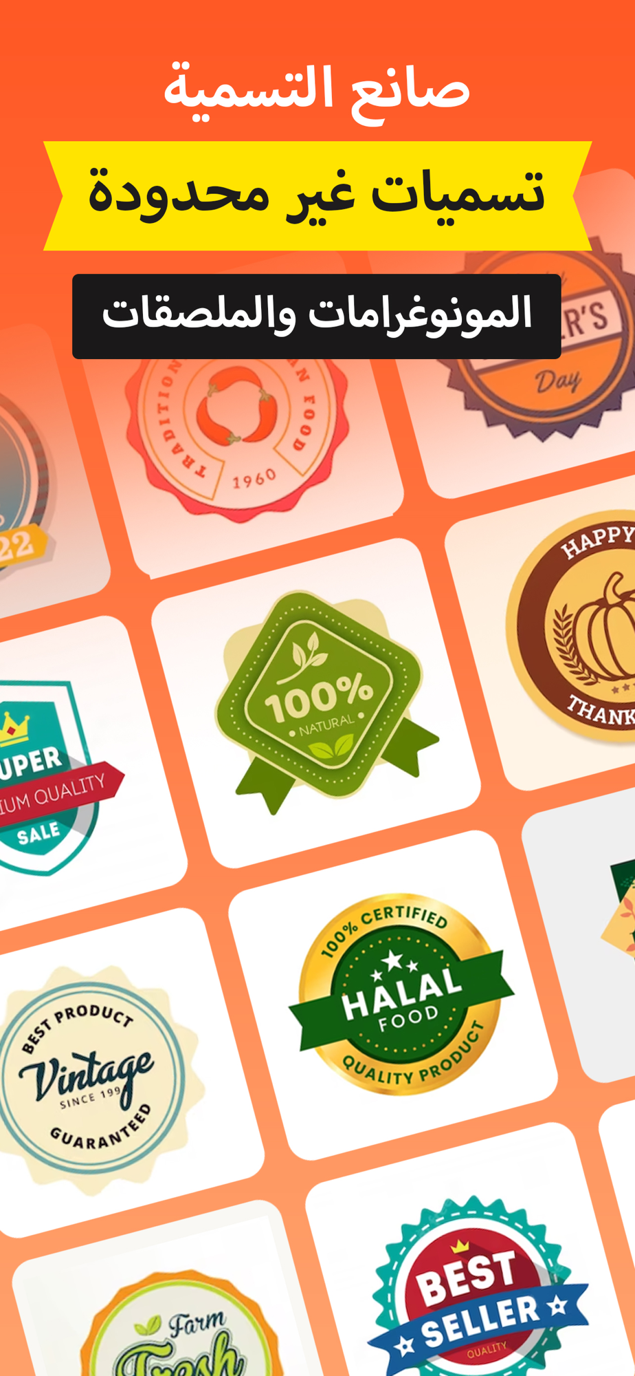 يلبي تطبيق صانع الملصقات هذا احتياجاتك اليومية ويسمح لك بإنشاء ملصقات واثقة من نفسها. استخدم هذا التطبيق لإنشاء ملصقاتك الفاخرة بسهولة وجعل منتجاتك أكثر جاذبية.