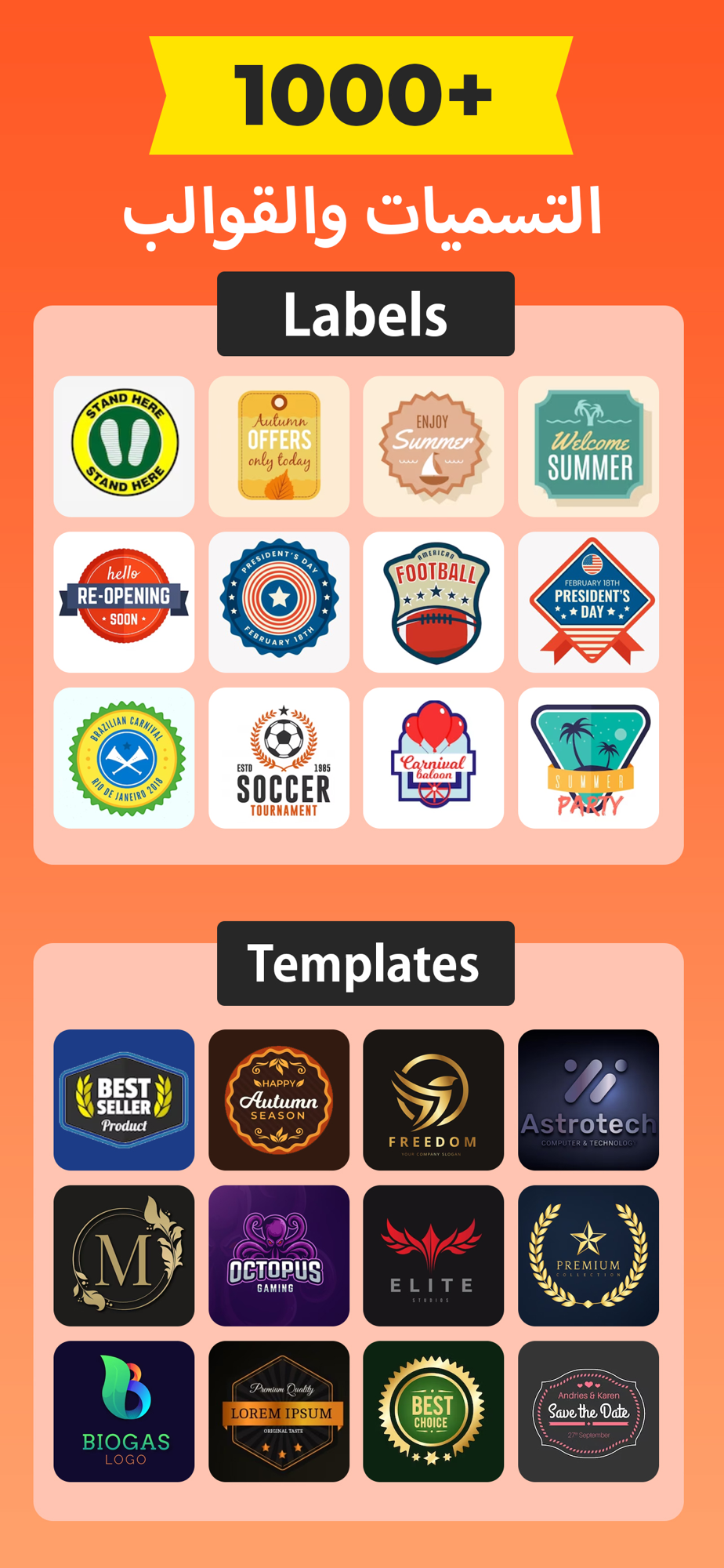 يمنحك تطبيق صانع الملصقات هذا واجهة سهلة لإنشاء ملصقات جميلة وجذابة. يمكنك إنشاء ملصقات فريدة وجميلة لمنتجاتك أو مشاريعك الإبداعية أو عناصر التوقيع أو أي محتوى آخر.