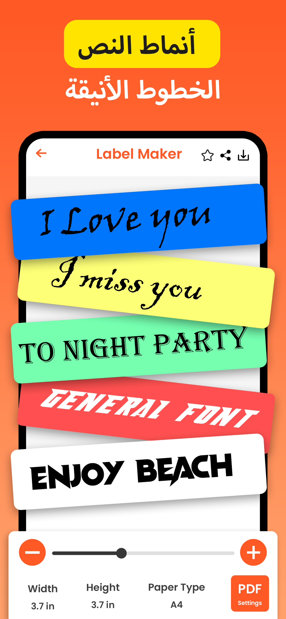 يمكنك اختيار أحجام ملصقات مختلفة وفقًا لاحتياجاتك. سواء كنت تريد ملصقات صغيرة أو ملصقات كبيرة، فإن هذا التطبيق يوفر لك طريقة سهلة لإنشاء جميع أنواع الملصقات.