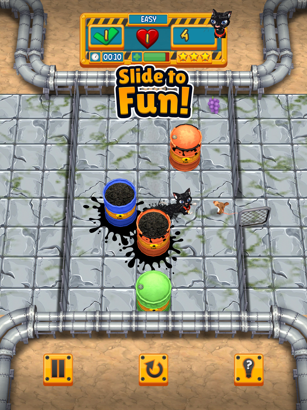 Discover Oily Cat, the groundbreaking puzzle game that challenges your intellect and logical skills. Join the fearless cat on its slippery mission to capture the mouse, navigating obstacles and overcoming increasingly complex challenges. With 1,500 levels divided into three difficulty levels, this game will keep you entertained and motivated. Slide into fun and download Oily Cat now!
