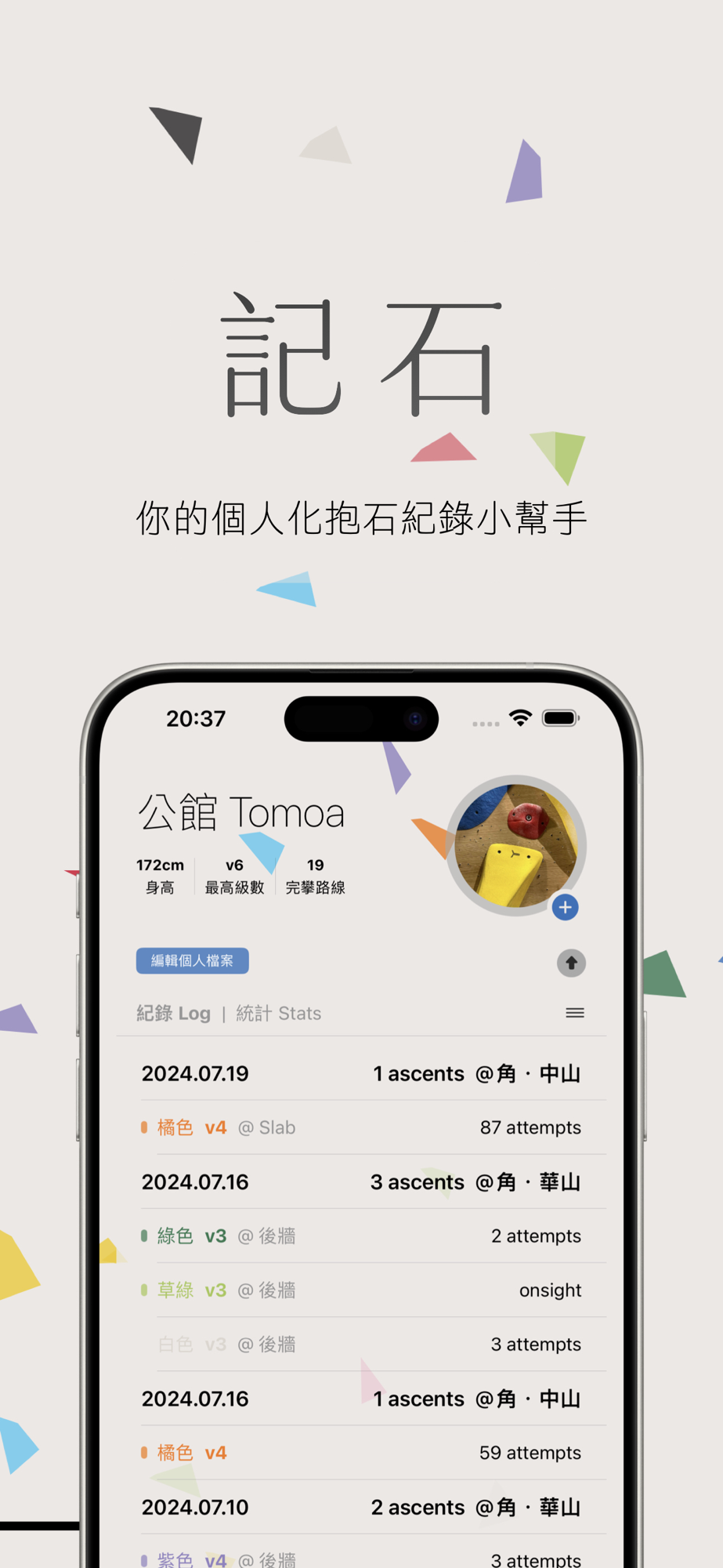 - 個人訓練統計:提供個人抱石數據的詳細統計分析,幫助自己持續改進技巧。