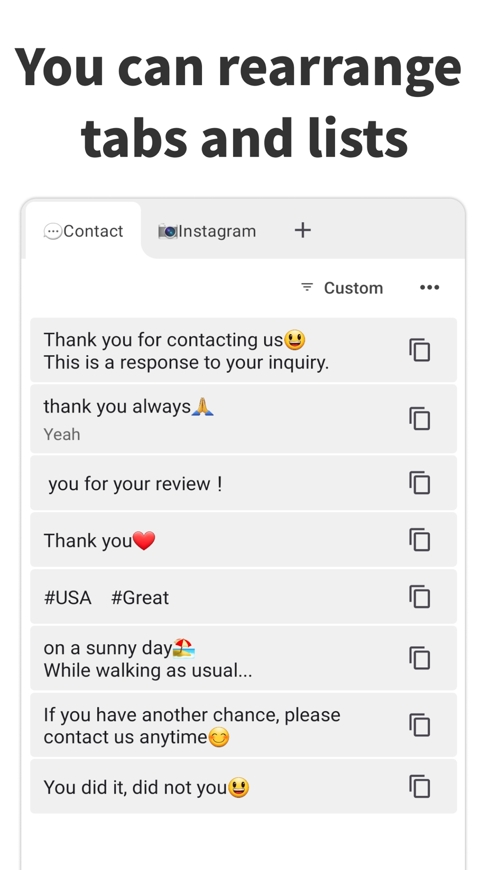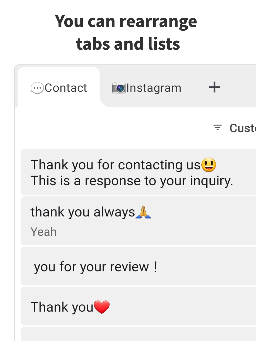 Tabs and tasks can be arranged via "drag & drop" or in "alphabetical order".