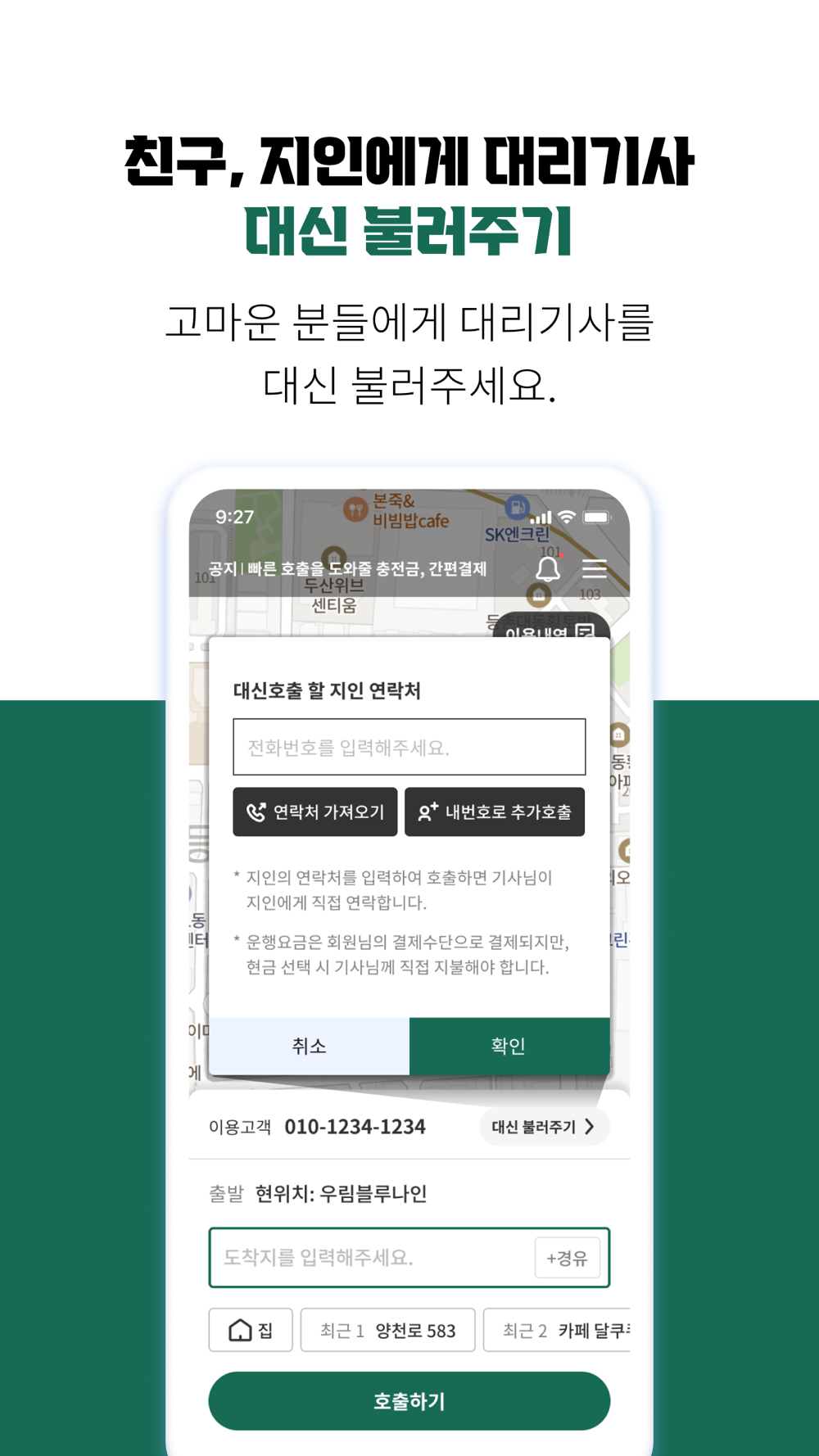 - 예약 시 원하는 시간에 대리 사용할 수 있도록 자동으로 호출되요!