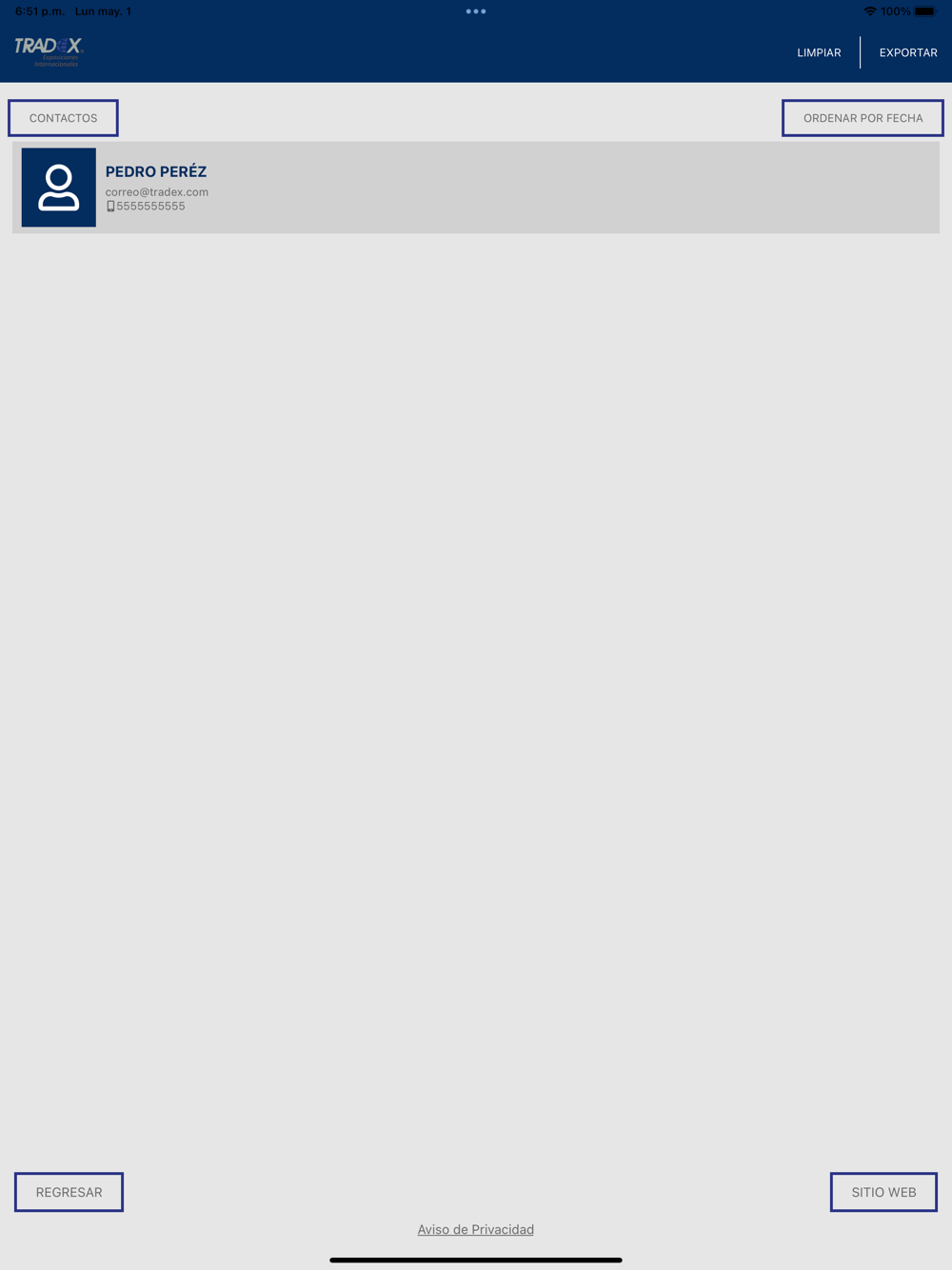 Agregue las personas que conozca en los eventos de Tradex directo a su libreta de contactos o a la aplicación.