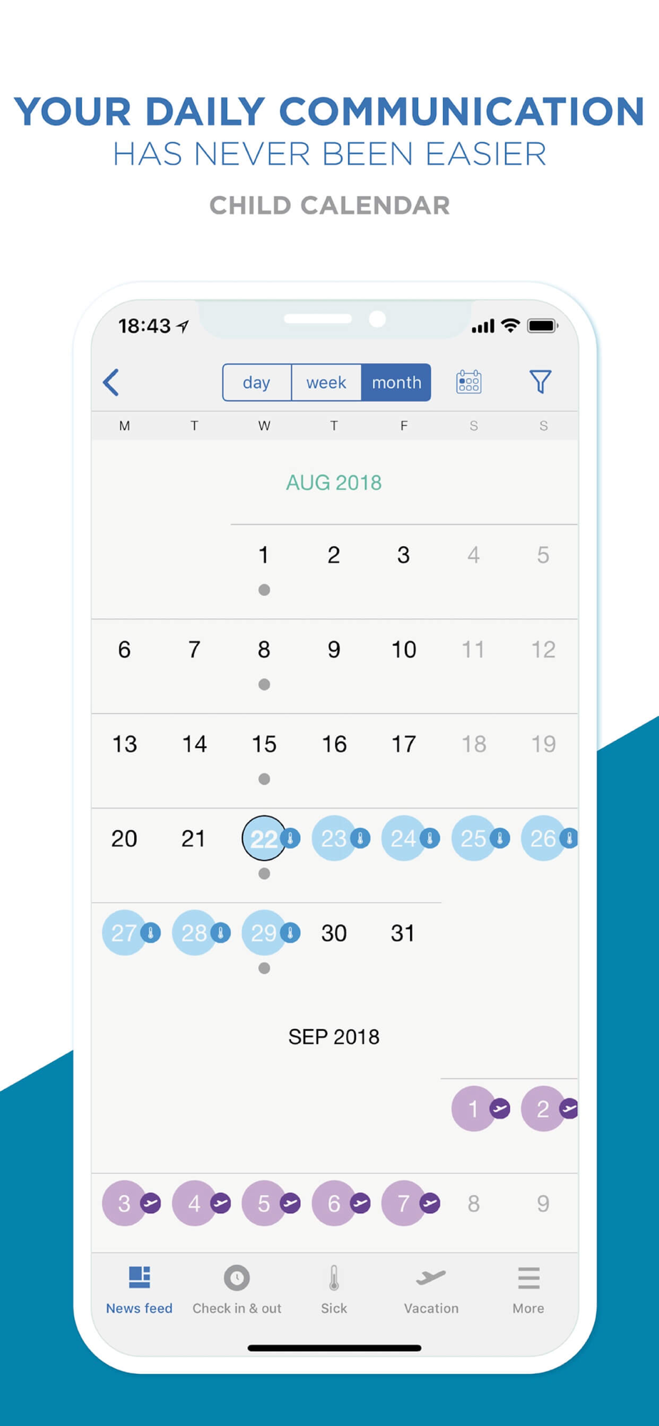 In the News Feed you can view relevant diaries, bulletins, activities, and current images and videos. It is also possible to reply to invitations, activities, conferences and much more. For a better overview of it all, access the App's own Calendar. In the Calendar you can easily access all relevant events sorted by day, week or month.