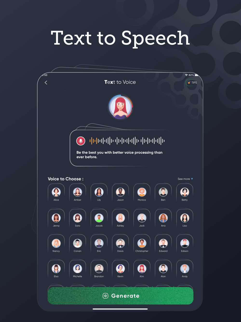 ● Choose from a wide range of AI voices that can make you sound like a robot, another person, an alien, or even a funny cartoon character. Your voice, your choice!