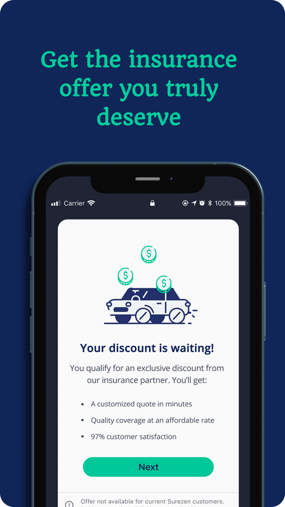 The DriveGuru app helps users save on auto insurance by demonstrating safe driving habits. The app allows users to sign up for a free test drive program within seconds. Users in qualifying states drive around for about 30 days and get ongoing feedback and insights on driving behavior, helping them increase the size and odds of their discounts. Upon qualification, users see unique offers from leading insurers directly in the app.
