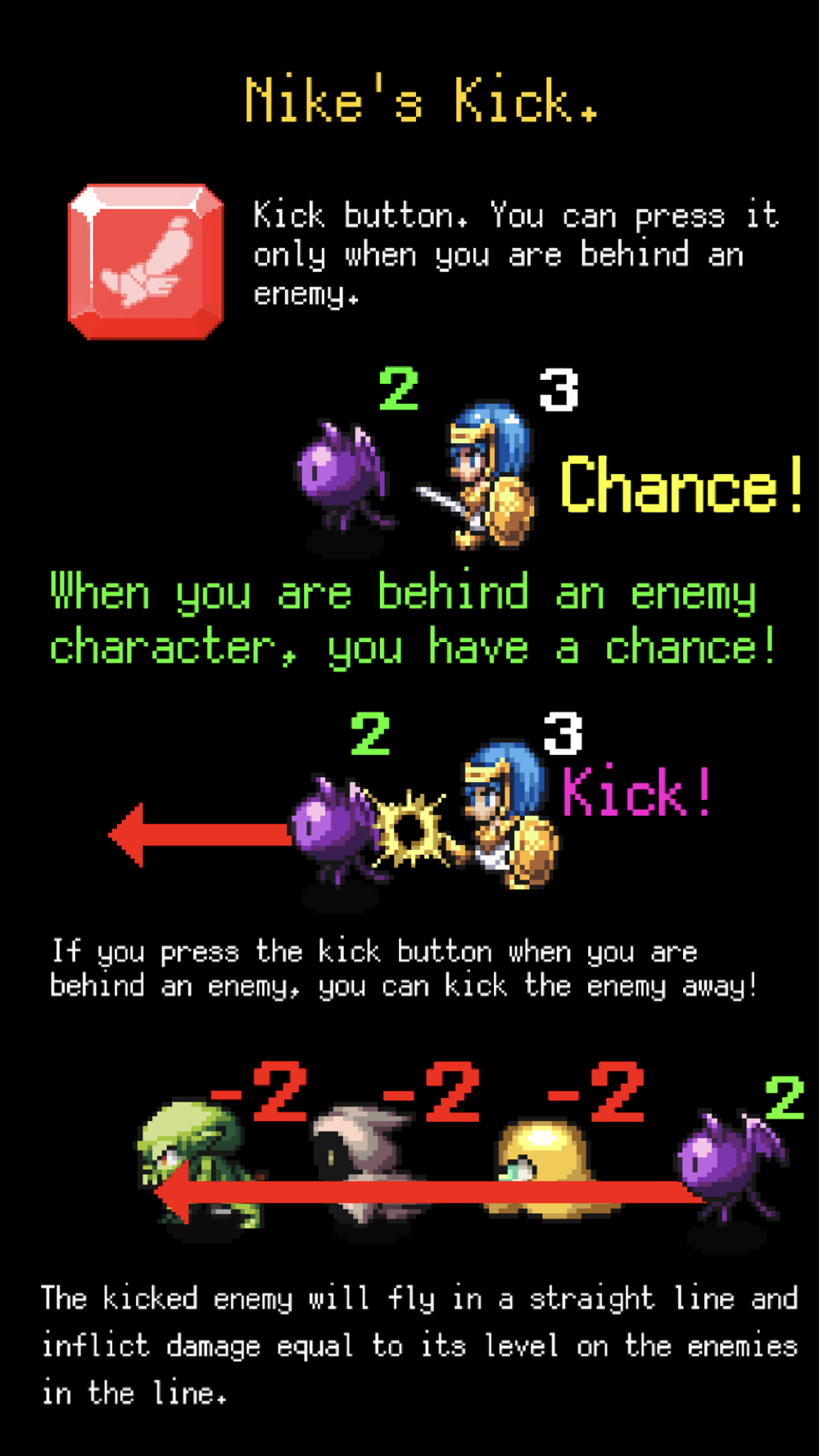 Nike will be damaged if you fight against enemies, which is higher than you, but you can kick off a high -level enemy if you take it behind.
