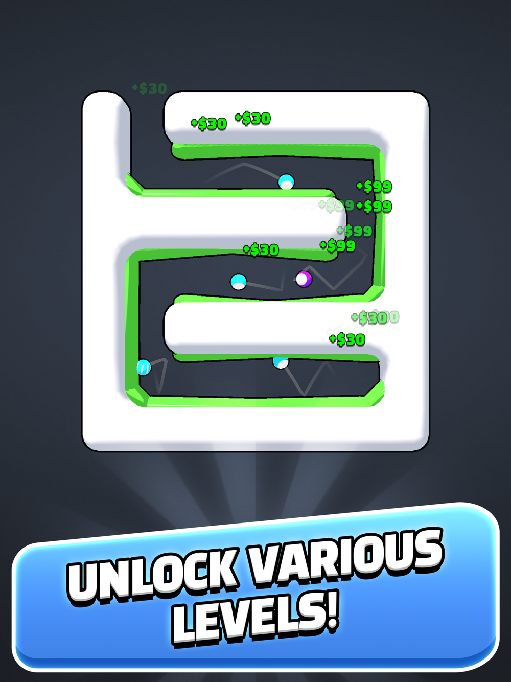 Embark on a journey through a variety of handcrafted levels, each with its own set of challenges and surprises. From simple setups to mind-boggling mazes, you'll never get bored!