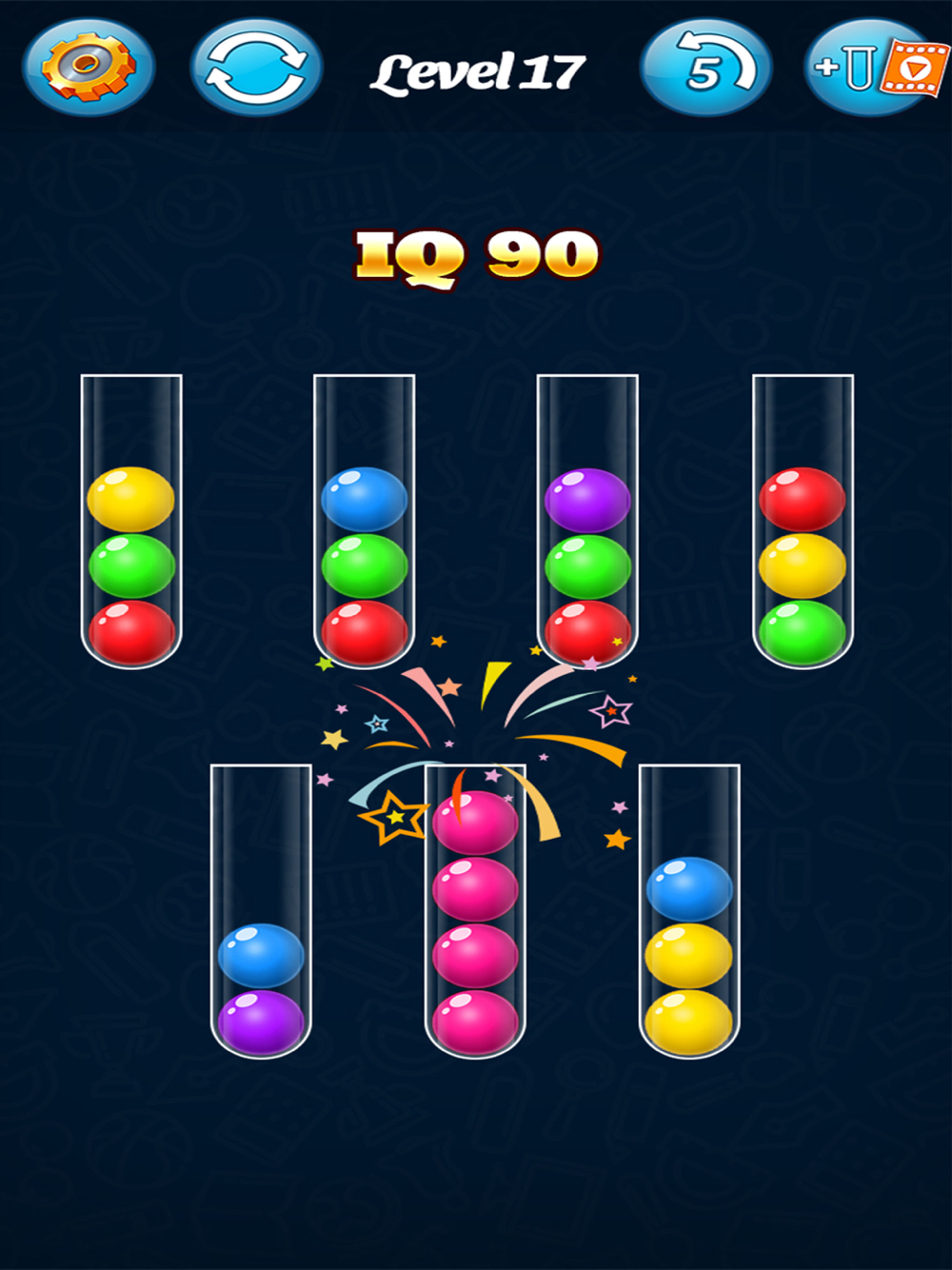 Your goal in Ball Sort Master is to sort the balls by color so that each tube contains only one color. The gameplay is deceptively simple: you start with a set of tubes, each holding a mix of colorful balls. By carefully moving the balls between the tubes, you must arrange them in such a way that no tube contains more than one color.