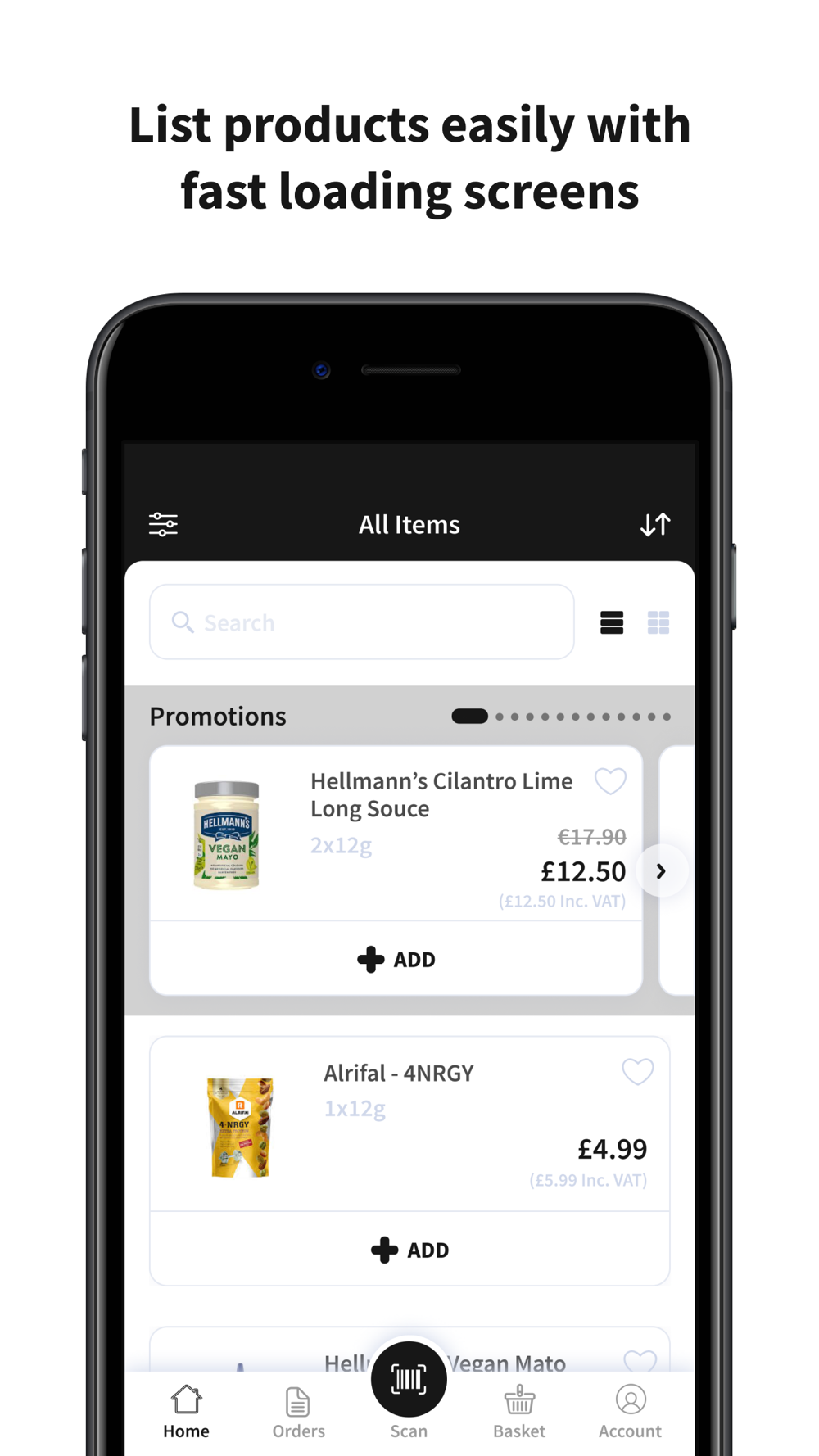 List the items and see their all details with FAST loading screens Add products to the basket EASILY