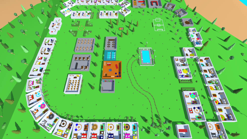 Observe your virus spread through a population engaged in various activities like walking, working, attending school, and partying.