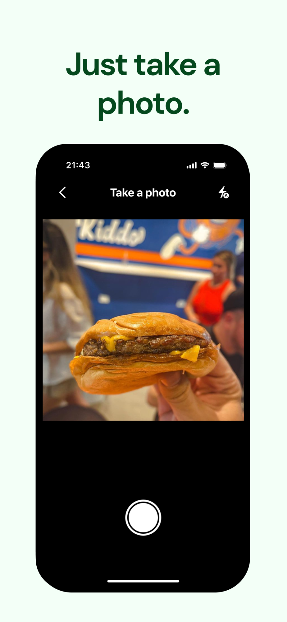 • Simply snap a picture and describe your meals. No databases, no weights. Just genuine, natural food tracking.