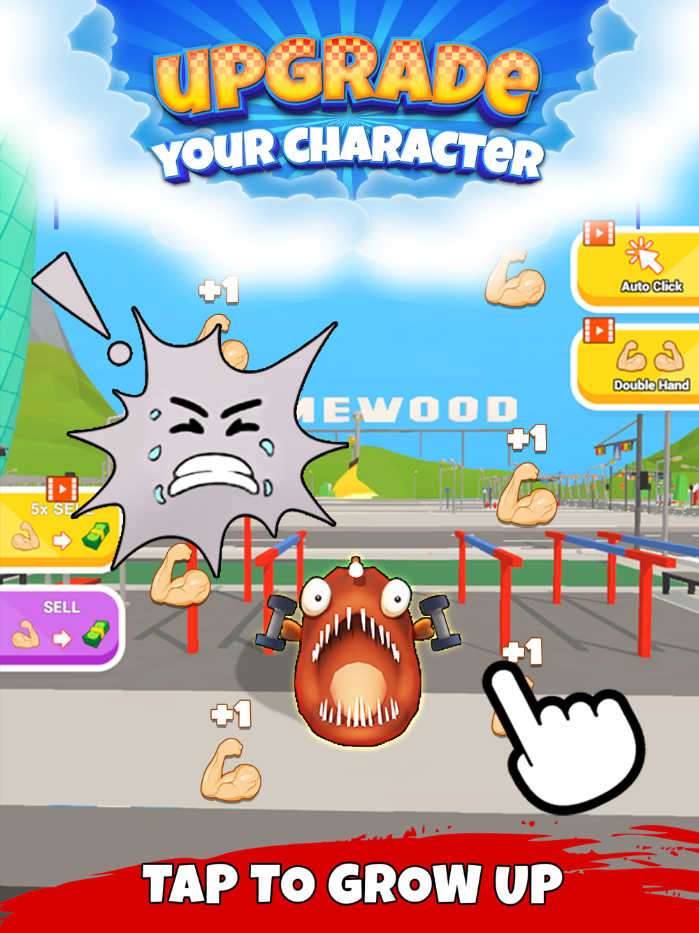Kickstart your journey by lifting lighter weights, trade the muscle gains you've earned for in-game currency, and invest in new equipment to lift even more weights.