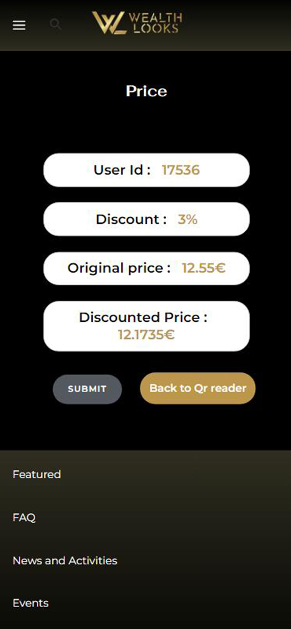 Vendor app for Wealthlooks Living app. Vendors participating in the Wealth Looks Living discount app, are promoted to Wealth Looks Living members and by offering discounts on products and services, they can benefit from higher sales and traffic to their store. By signing up, vendors need to offer an agreed discount to all members upon presentation of a valid QRcode.