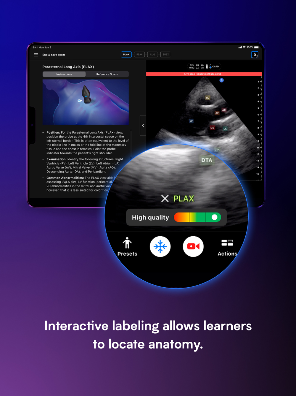 Download ScanLab and start building your scanning confidence today! The first ultrasound learning application of its kind, ScanLab provides learners and educators with a tool to practice scanning and establish the repetitions that build POCUS skills and technique, so you can feel confident bringing ultrasound into your regular practice.