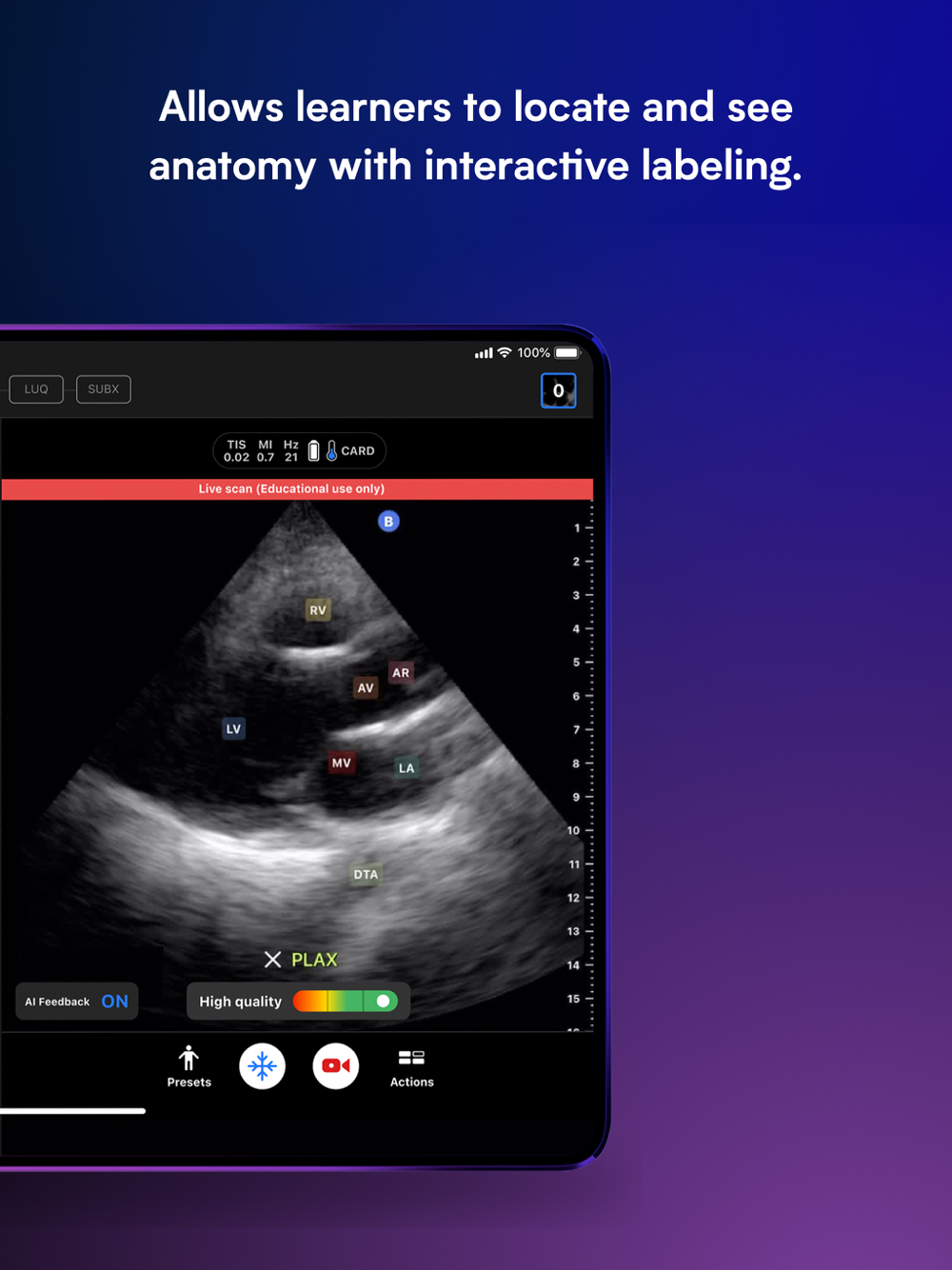 Interactive labeling allows you to locate and see critical anatomy. Image quality indicator provides real-time feedback to help you optimize image quality.