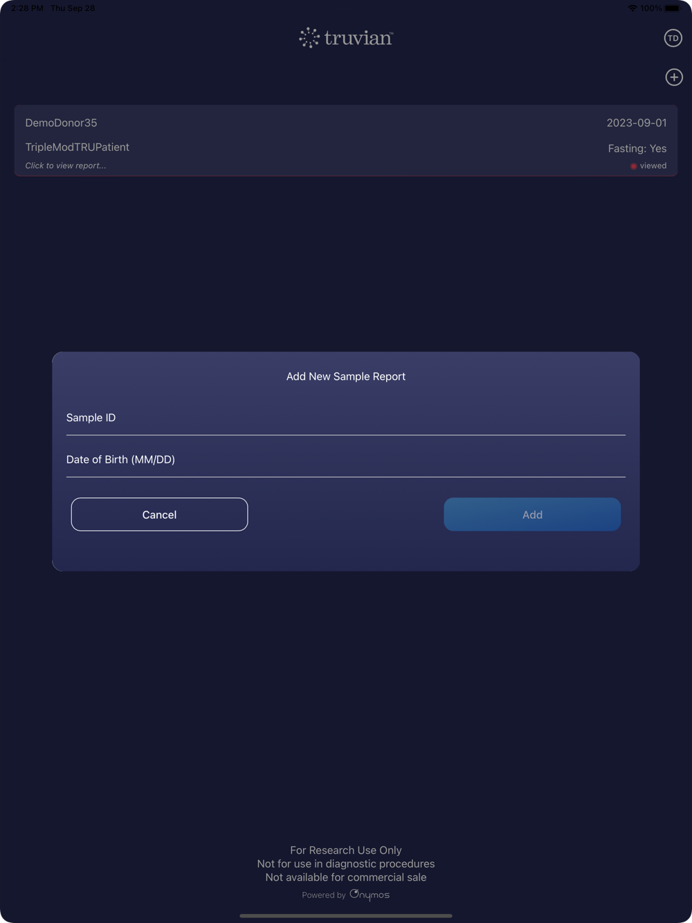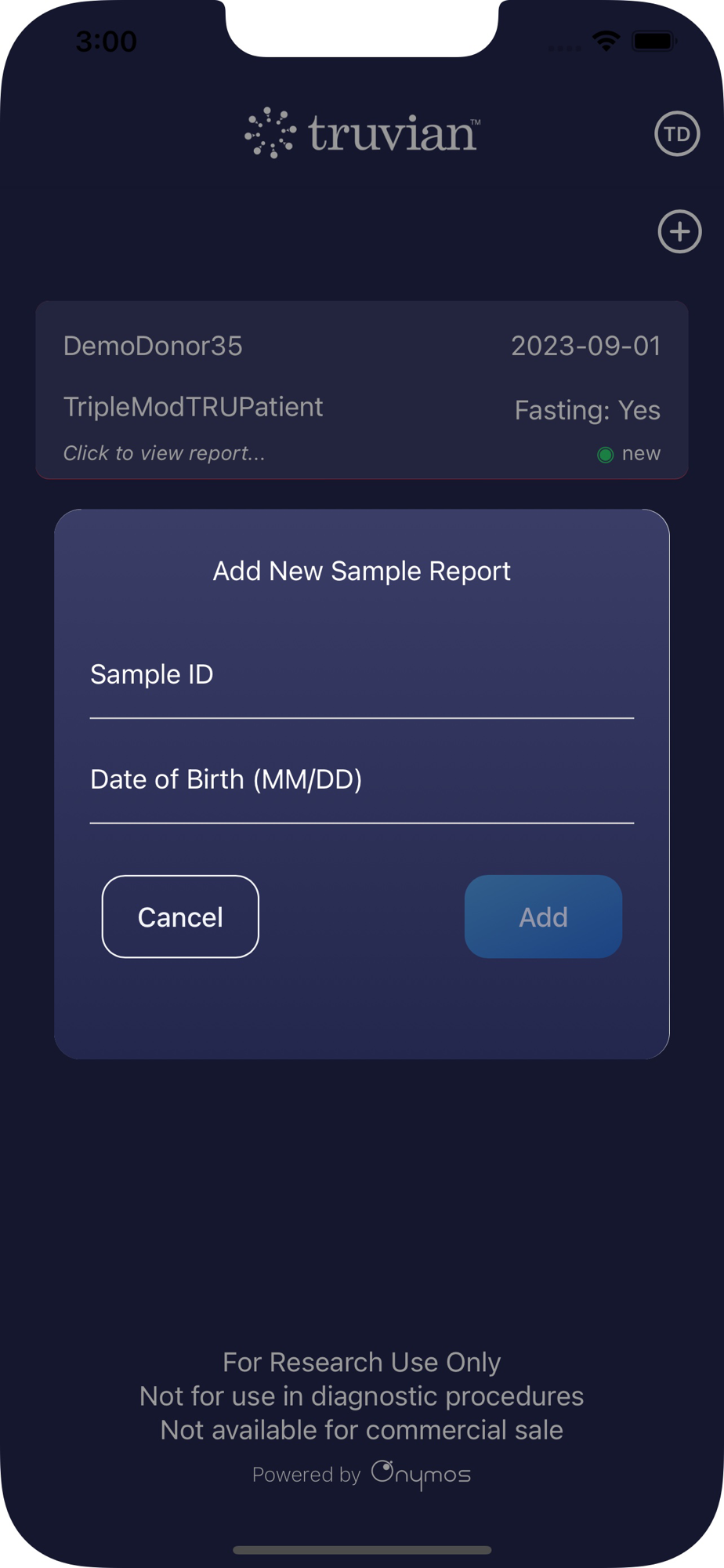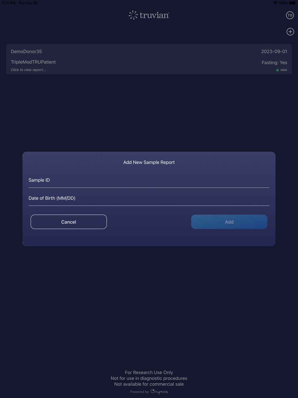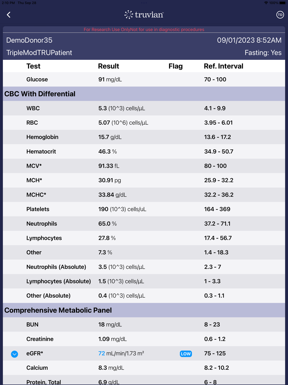 Truvian HLTH allows donors to view their blood test results during the visit at HLTH2023 conference. App allows user registration and linking test results to their profile.