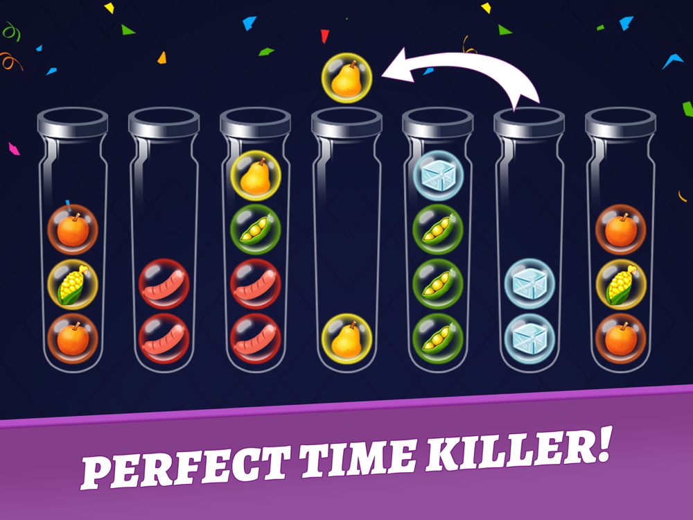 SORT COLORFUL BALLS AND MERGE TASTY FOOD. Welcome to the exciting world of colorful balls, cute pets and tasty food: match colors, merge balls, make food and keep pets. Have endless fun with solving puzzles. Relax while training your brain!