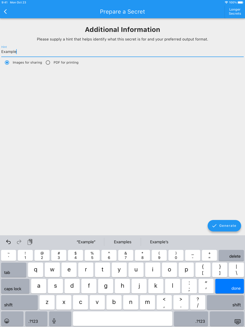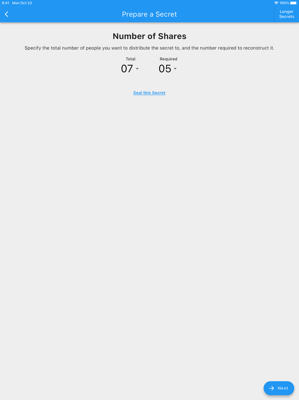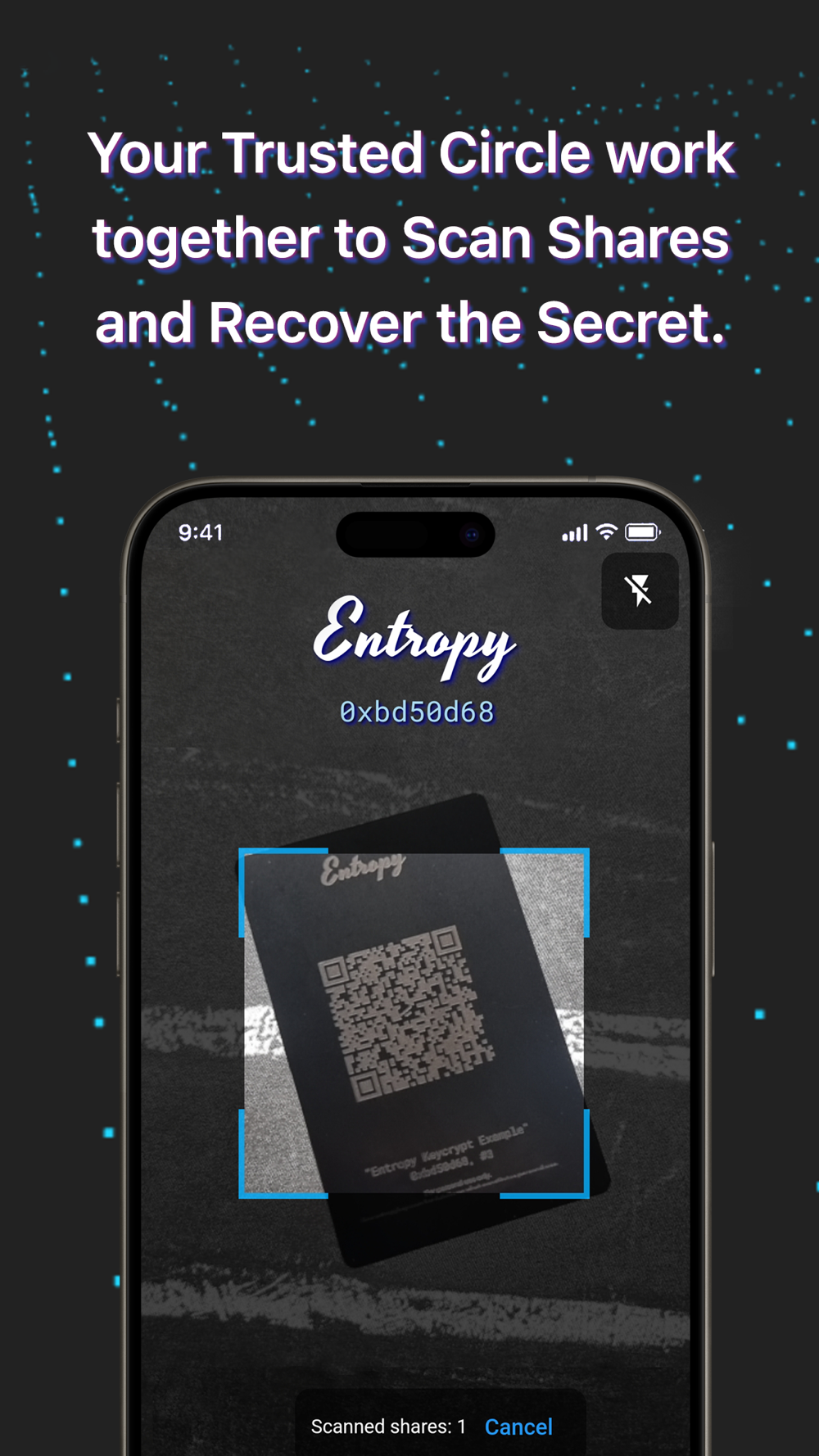 Entropy Keycrypt was designed with great care to be easy to use, even for less technical users in times of stress or personal upheaval. Reconstructing a secret is no more difficult than taking pictures with your iPhone or iPad.