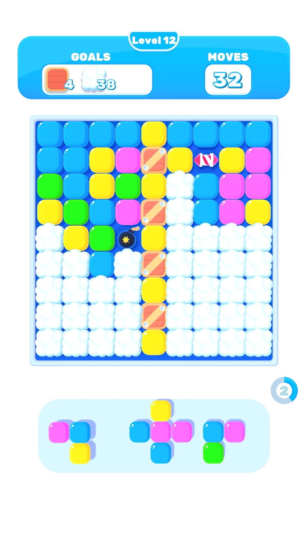 Place shapes on the grid and destroy clusters with the help of rockets, bombs, and other boosters!