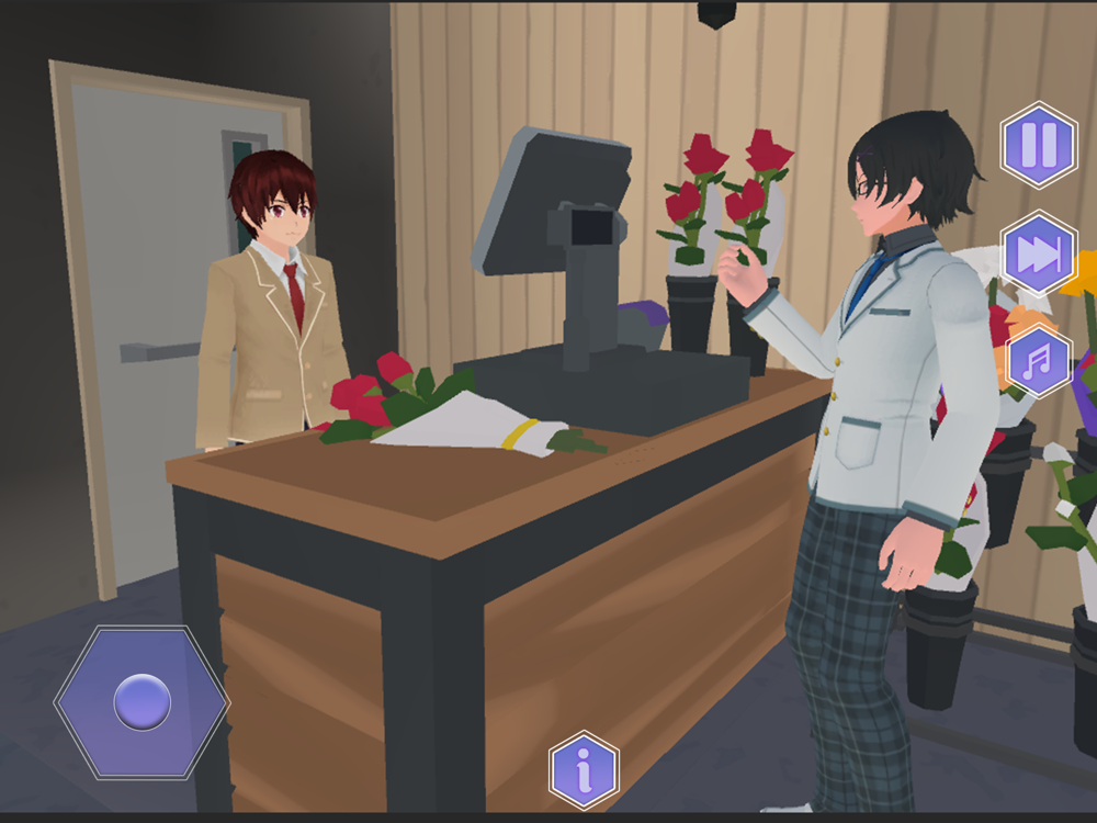 Welcome to our new anime school life game. Experience the adventure of high school life. In the anime game, the boy is sitting in the restaurant with his friends and enjoying their company when suddenly a girl comes in. The anime boy is looking at the girl, and she is looking gorgeous to him. The adventure is looking at the girl. The boy felt in love with her, and he is continuously looking at her. The boy is sleeping on his bed and looking forward to going to talk with the girl, and then he wakes up and gets up to get ready to go to school. After reaching the school, the boy looked for the girl of his dreams in the high school. He is very happy to see her at the school, and he wants to form friendships with her. The boy offered to the girl that he wanted to form a friendship with her; she agreed to his offer. Then the boy and girl enjoyed their friendships. At the end, the boy agreed to her parents and marriage with the girl.
