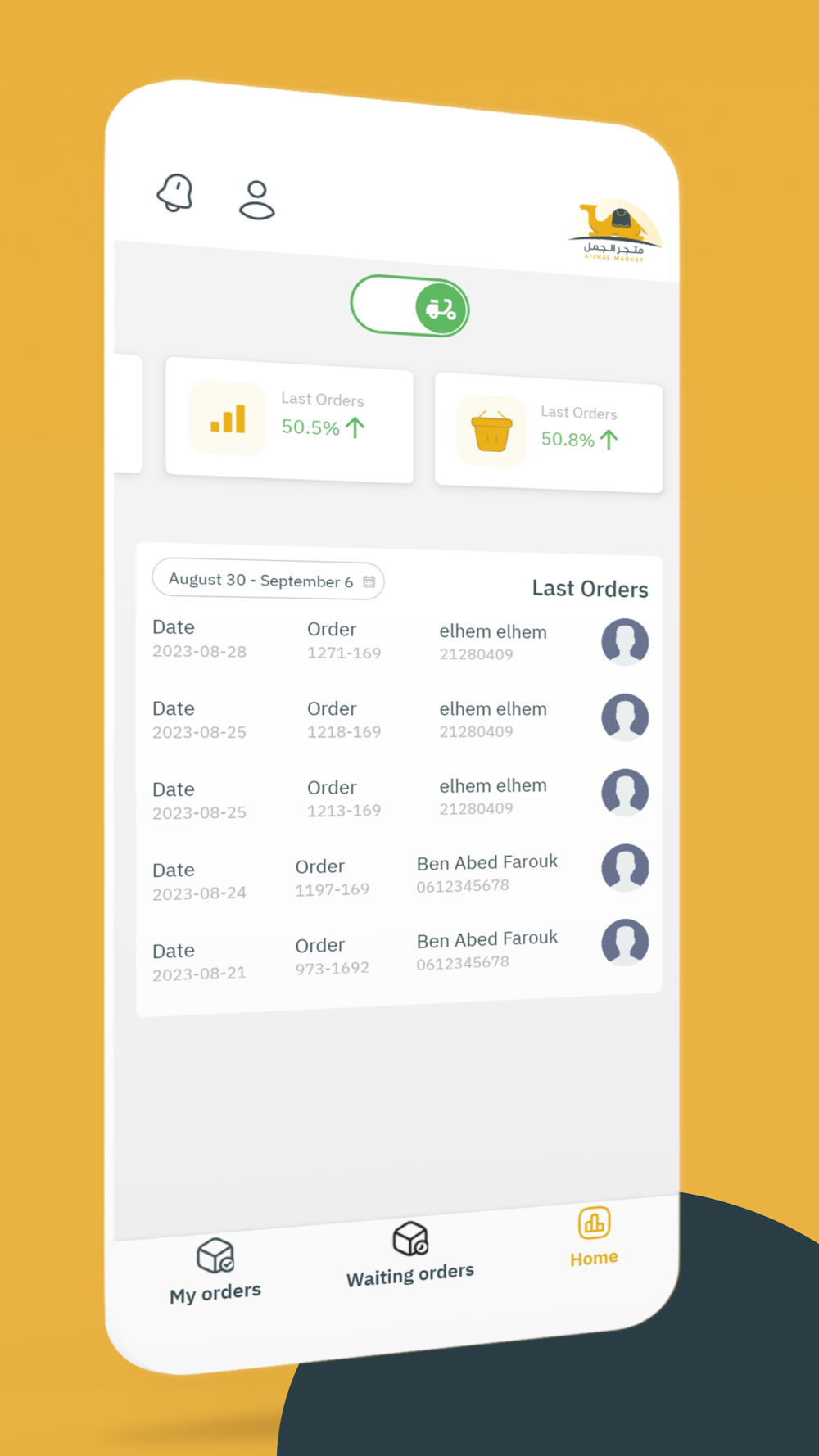تطبيق التوصيل الخاص بمتجر الجمل هو أداة تمكن السائقين من قبول وتوصيل الطلبات من المتاجر إلى العملاء بكفاءة ع الية. يقدم التطبيق توجيهات دقيقة للتسليم وإدارة الزمنية، مما يساعد السائقين على تحسين أدائهم وتقديم تجربة توصيل سلسة وموثوقة للعملاء.