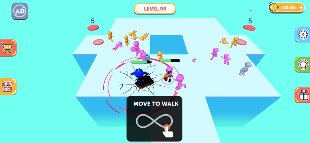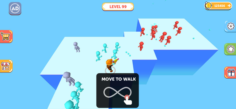 Use gun to shoot neutral roles in map to make them follow you. Constantly expand your team to defeat enemies.