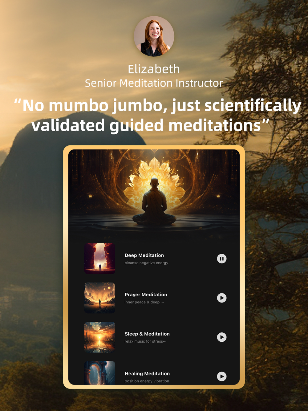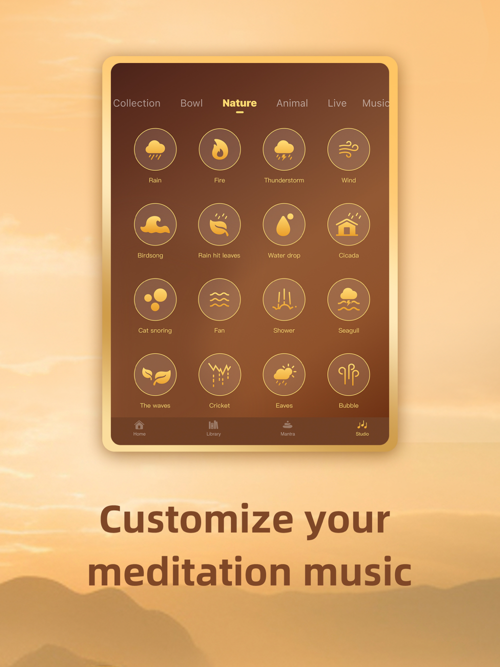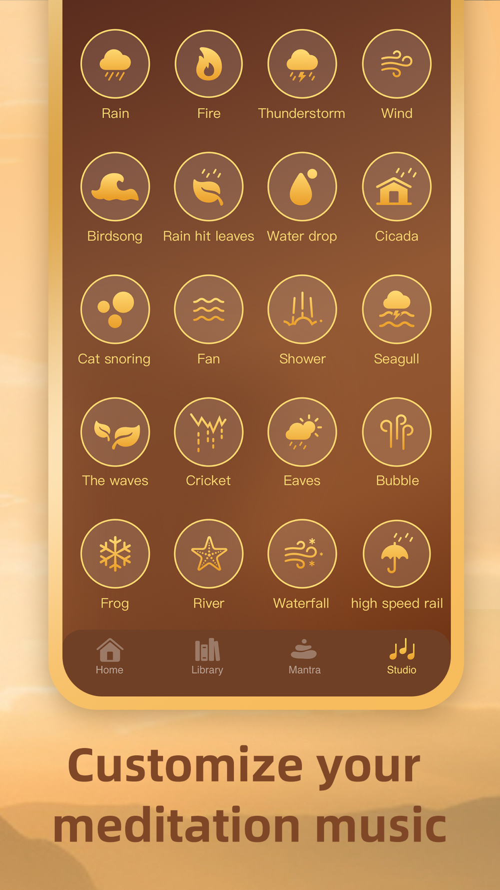 There are over 200 different sounds, types of music and mantras for you to use as a background for your perfect meditation session.