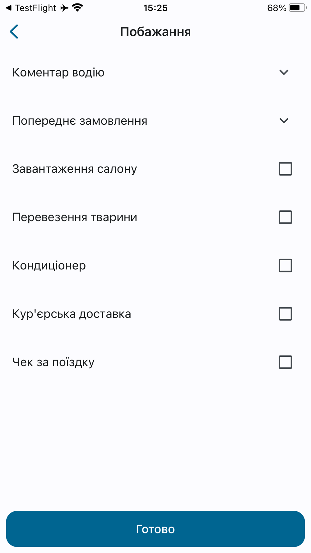 5. Вибір класу авто та опцій поїздки: Користувачі можуть вибирати клас автомобіля (економ, бізнес, преміум тощо) та додаткові опції для комфортної поїздки.