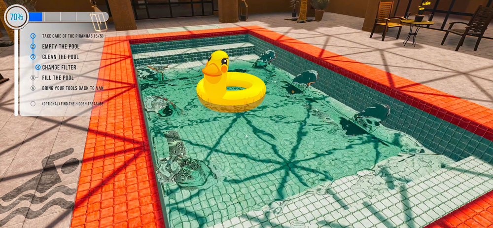 O objetivo é realizar tarefas atribuídas pelos clientes, que podem variar desde a limpeza de uma piscina residencial no quintal de um cliente até a manutenção da piscina em um movimentado complexo de escritórios.