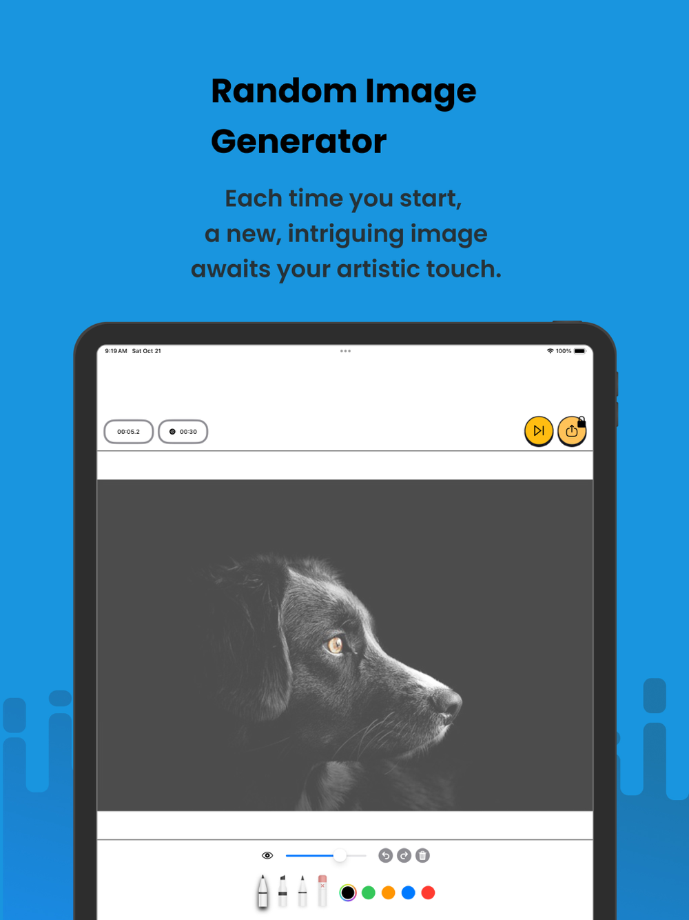 Discover a world of creativity at your fingertips. With just a click of the 'Start' button, you'll be presented with a random image to trace and embellish on your canvas. But here's the twist - you only have 30 seconds to complete your masterpiece!