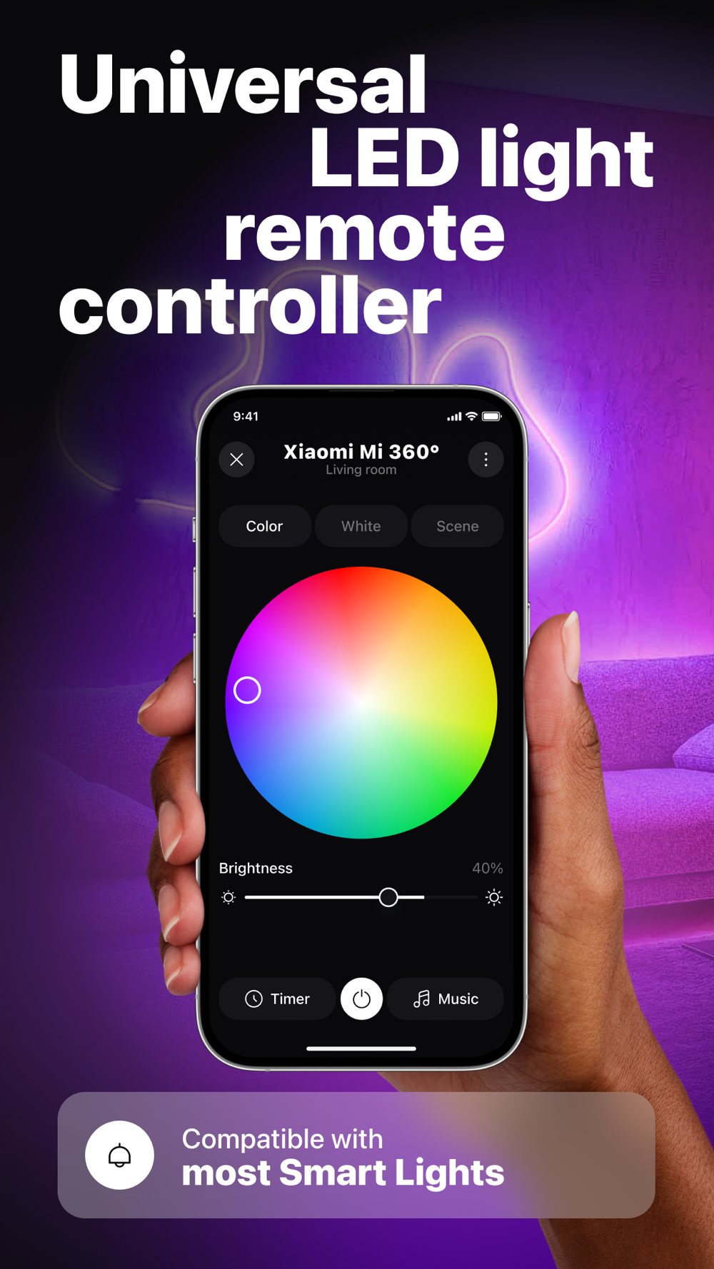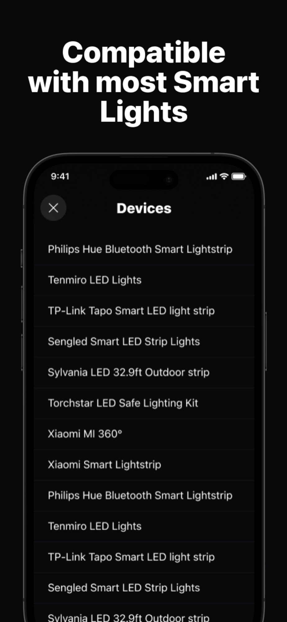 Compatible with a wide range of LED devices, including Philips Hue, LIFX, Nanoleaf, Govee, and more.