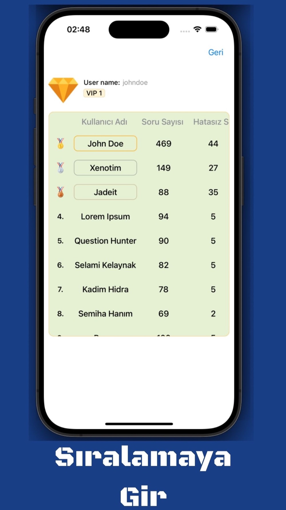 Sıralama tablolarında diğer kullanıcılarla yarışın ve başarılarınızı paylaşın. Motivasyonunuzu artırmak için başarılarınızı herkesle karşılaştırın.
