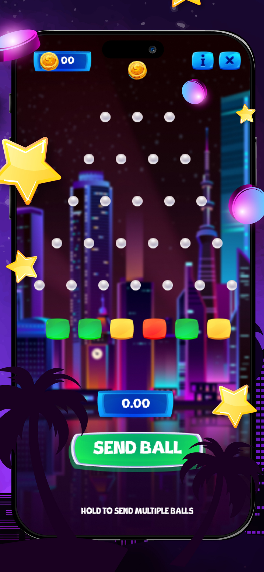 Our plinko app is based on a simple and fun concept. You start with a vertical board with square cells on it. The plinko balls coins start their journey from the top of the board and fall, bouncing off obstacles and colliding with the boards before they hit one of the six plinko real money cells at the bottom.