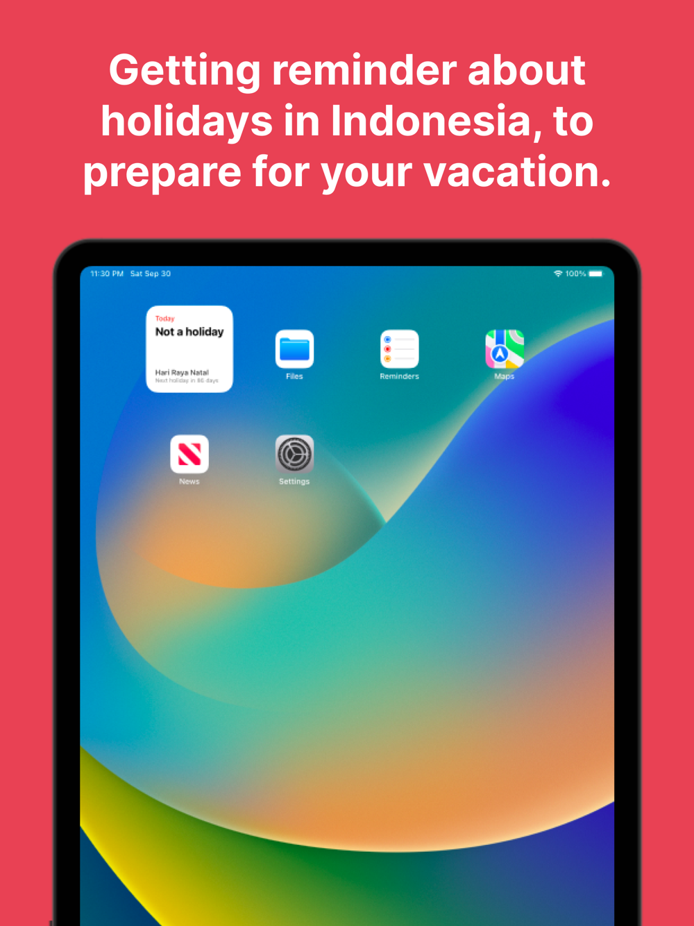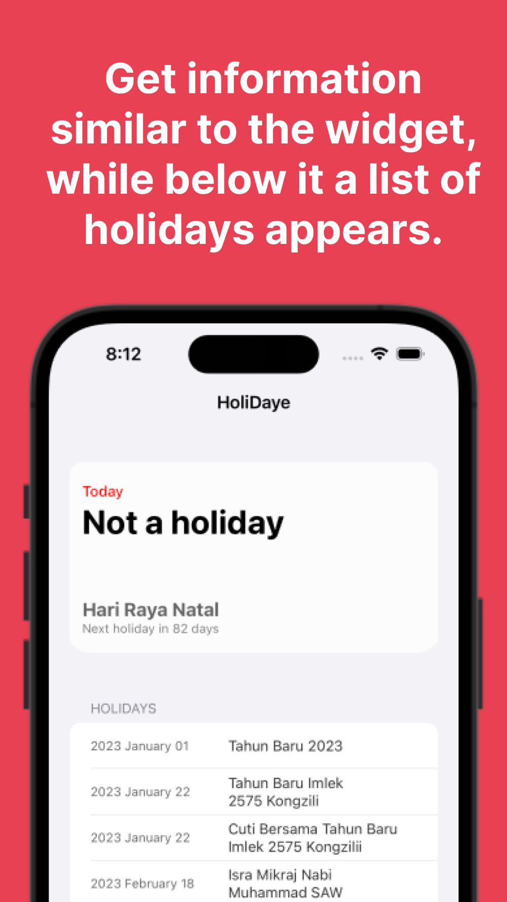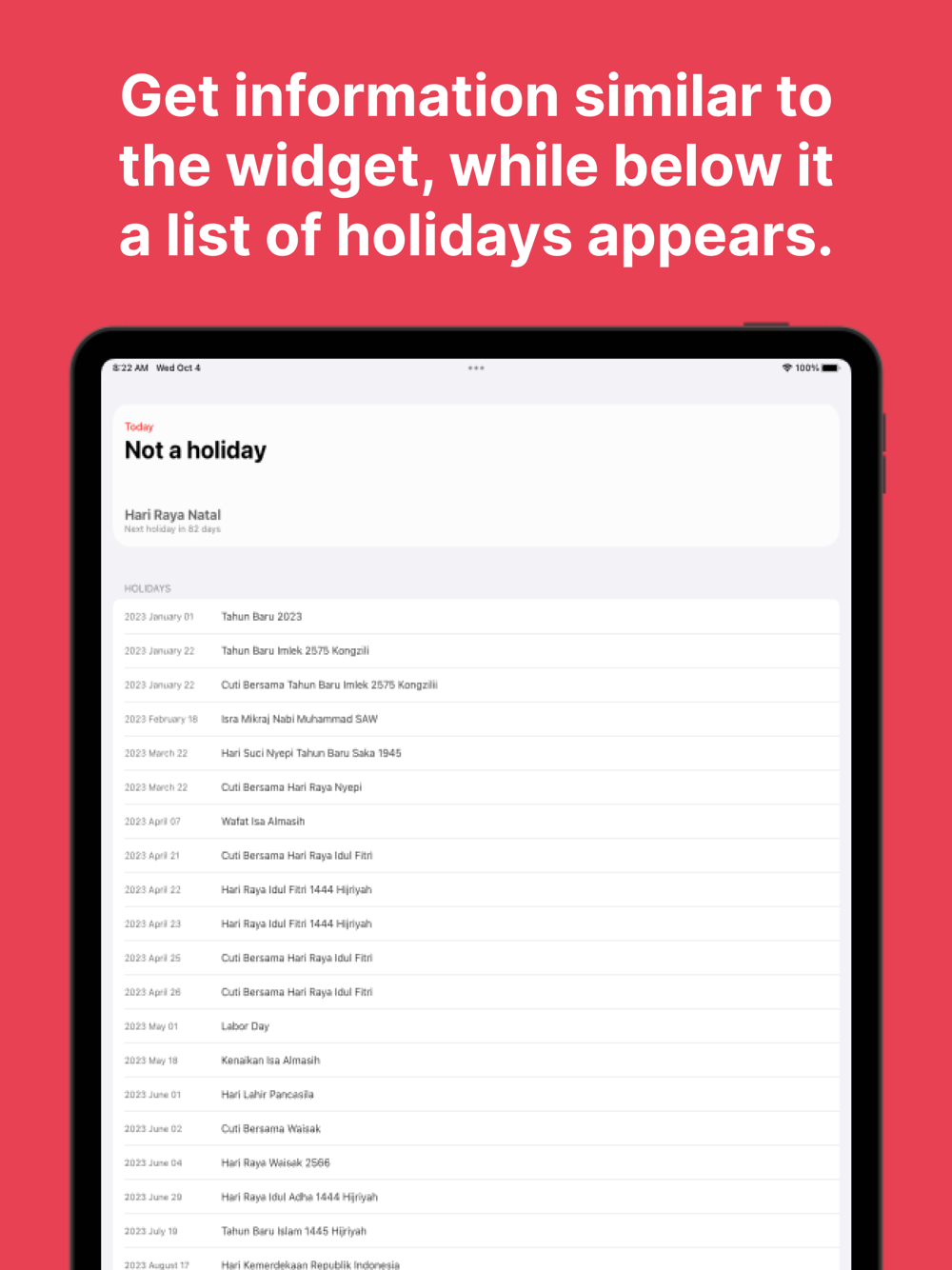 Welcome to the Indonesian Holidays app! The application displays a countdown of the days to which holidays will come. You can easily find out and remember national holidays and collective leave throughout Indonesia.