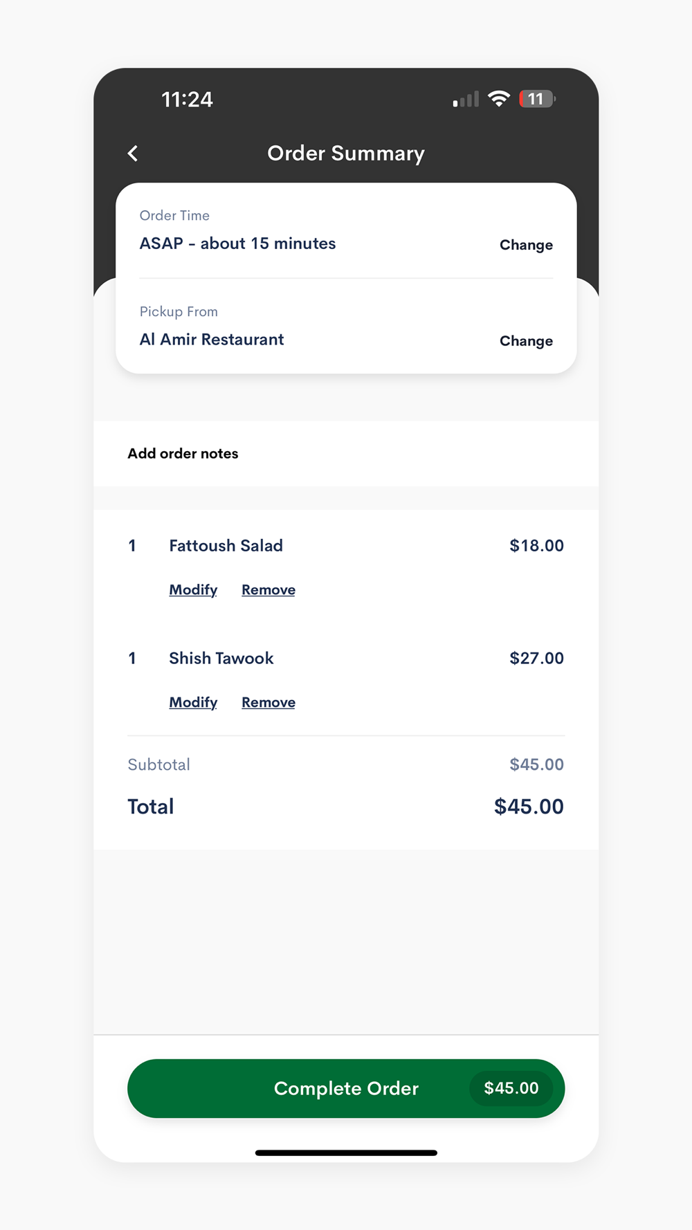 * Timed orders - Not ready just yet? Place your order in advance so it's ready when you are.
