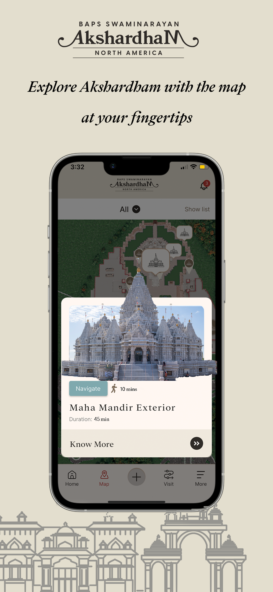 BAPS Swaminarayan Akshardham captures thousands of years of inspiring thoughts, values, architecture, and culture. This application will help guide visitors around the Akshardham Complex.