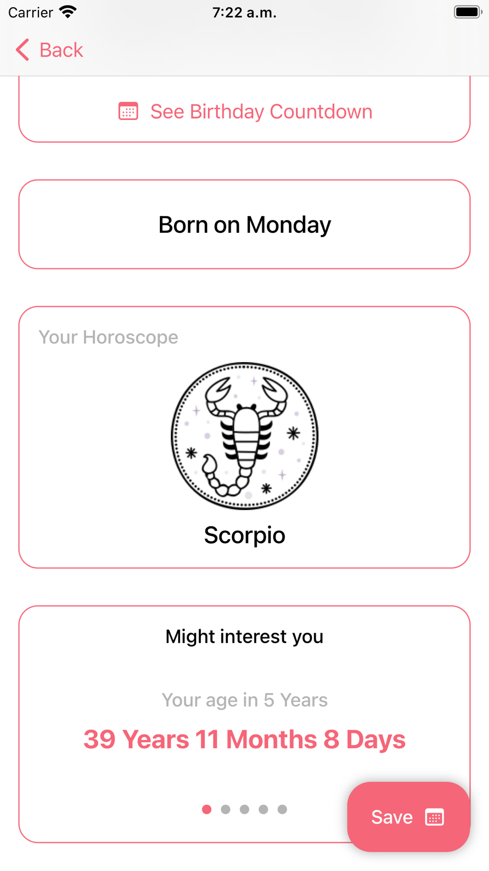 Age and Zodiac Details: By simply entering your date of birth, the app will reveal your zodiac sign and the day of the week you were born. This adds a personal and astrological touch to the app's experience.