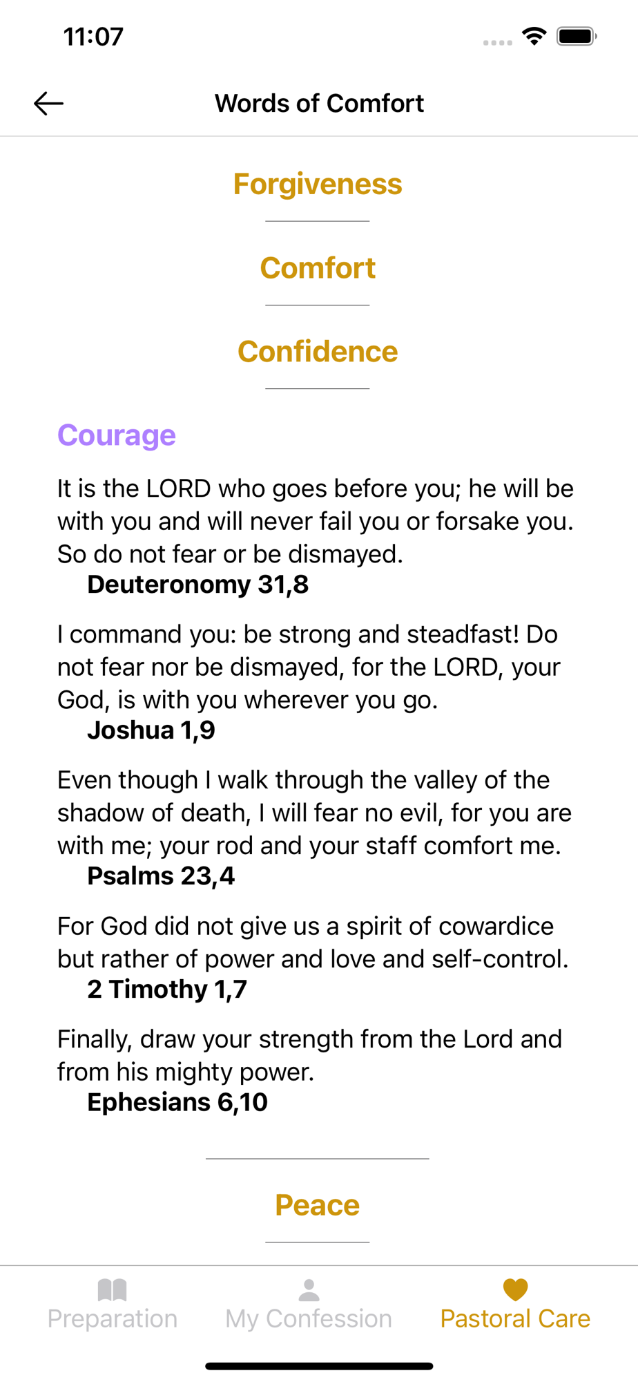 If you need support, you will find selected Bible verses that offer comfort and encouragement, as well as links to trustworthy pastoral care hotlines that can assist you in your confession process.