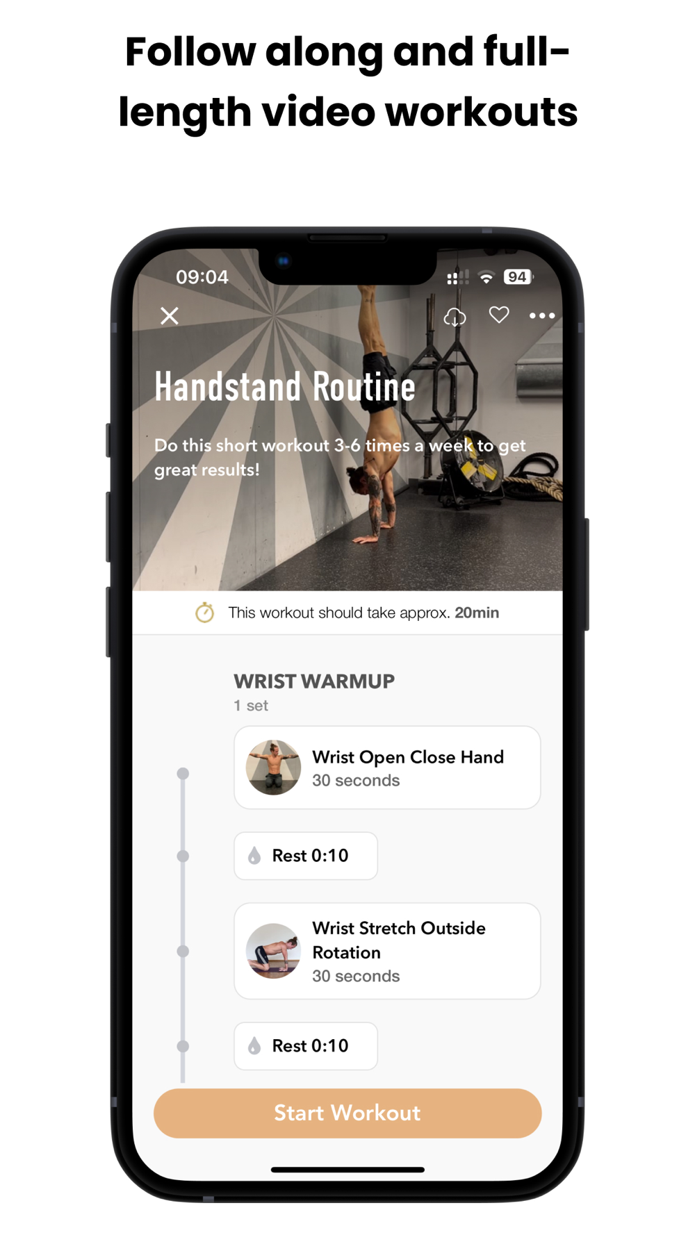 Explore a diverse array of workout options, whether you prefer structured 6- 8 week programs, quick bodyweight routines, or simply want to hit play and follow along – the possibilities are endless. The app offers a wide range of my expertise and style, covering bodyweight exercises, calisthenics, handstand training, mobility drills, locomotion routines, coordination elements, and more. In addition, the app provides educational videos and tutorials to guide you through exercises, helping you perfect your form and technique.