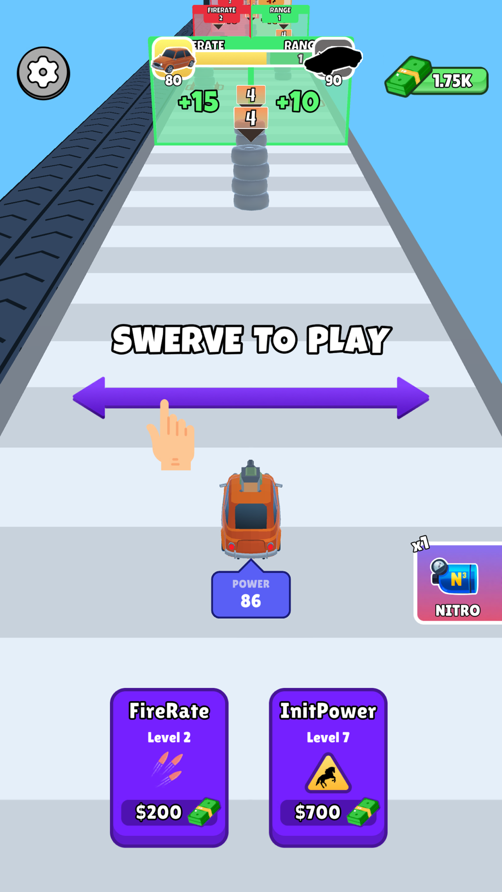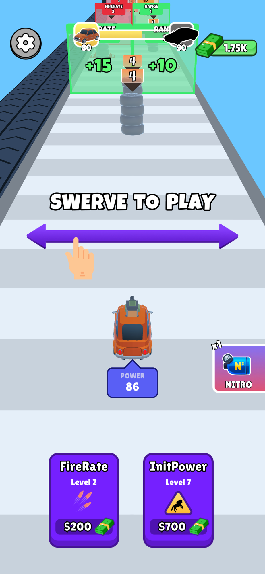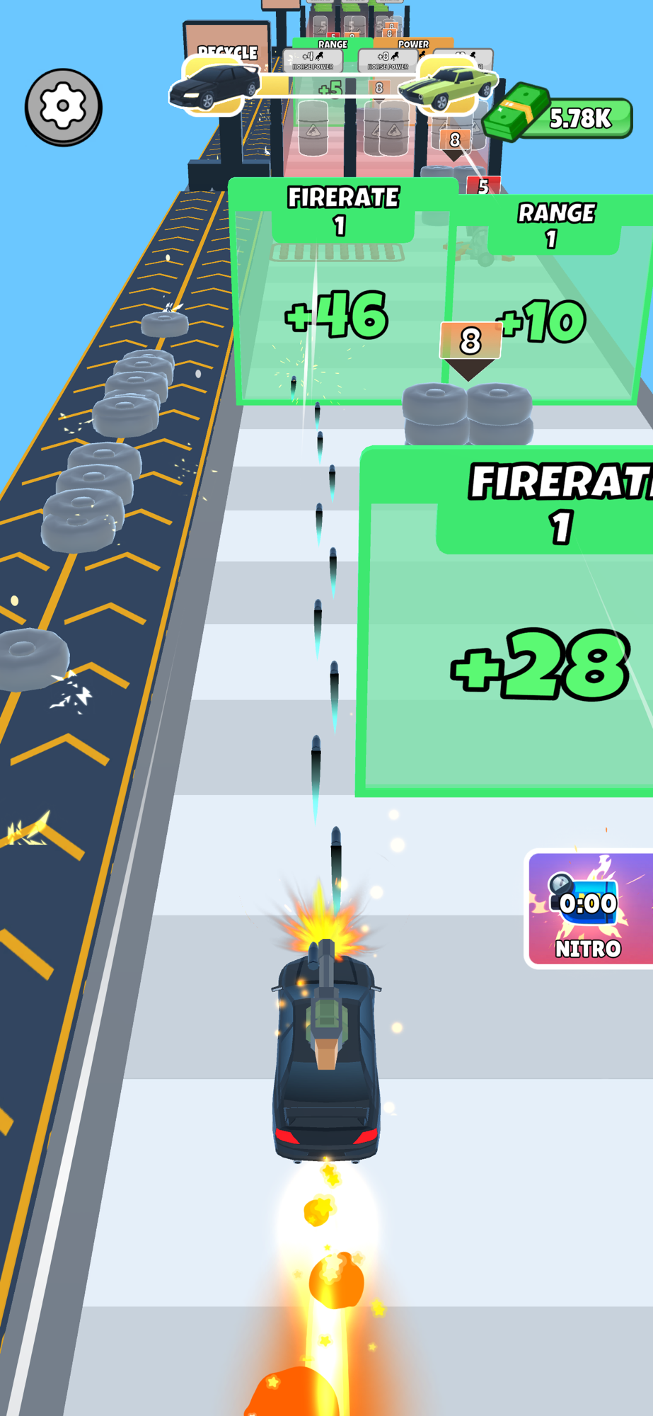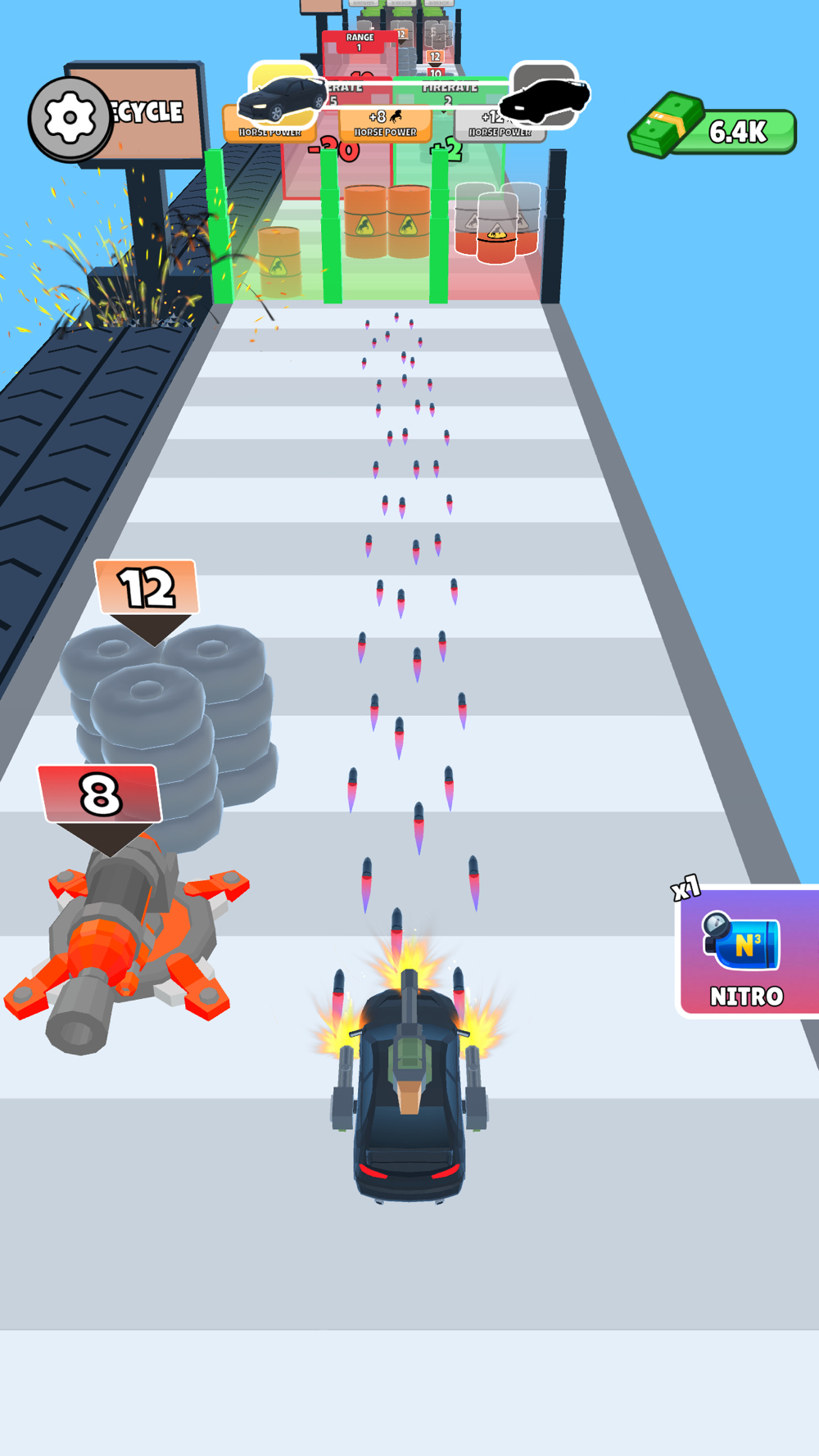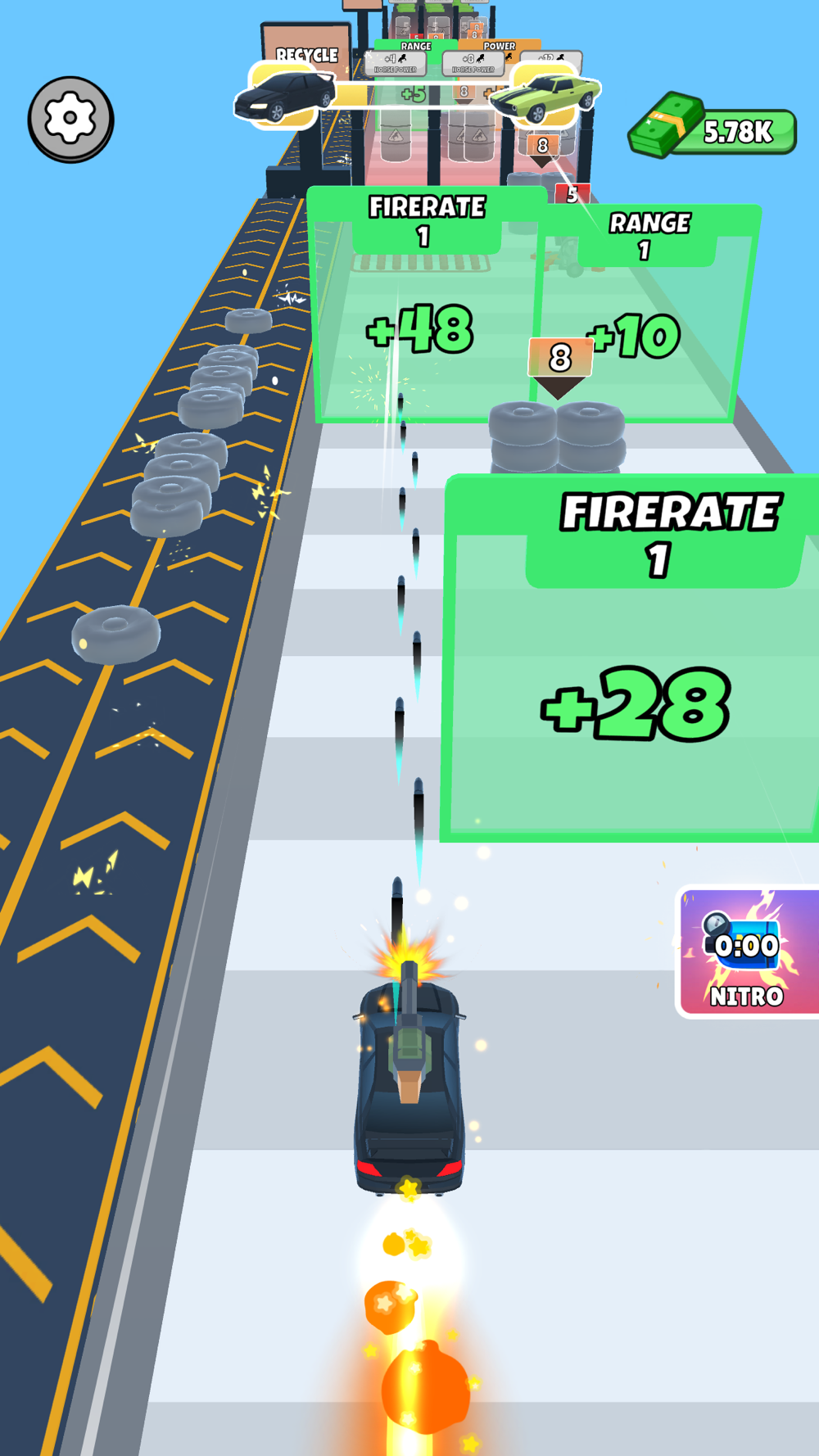Drive a weaponized car, fire at obstacles, choose and charge the best gates for super power-ups while collecting tons of money.