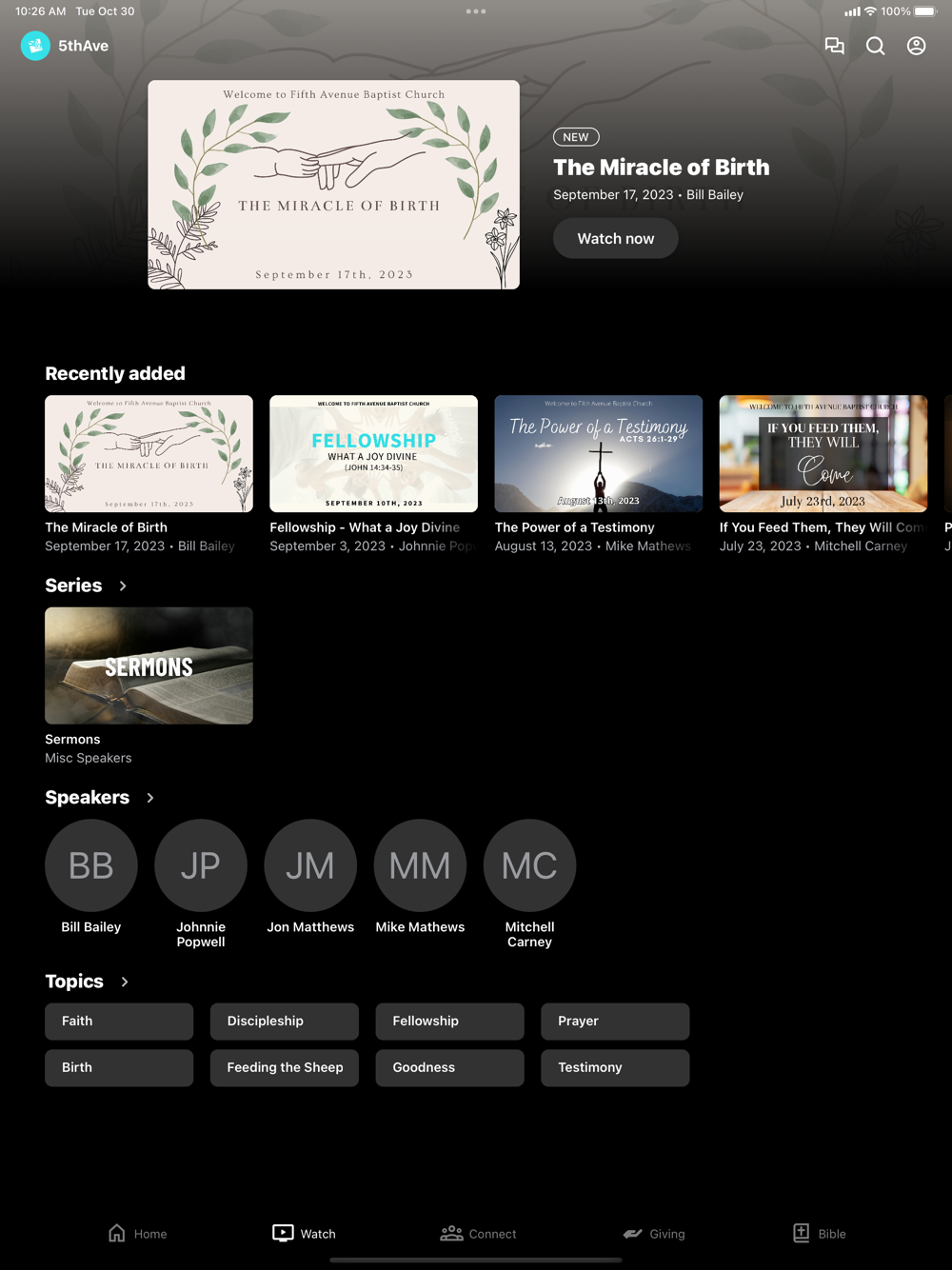 The official 5th Ave Baptist Church app provides easy access to previous messages, event dates, and community group information so you can always stay informed on what is happening at our church!
