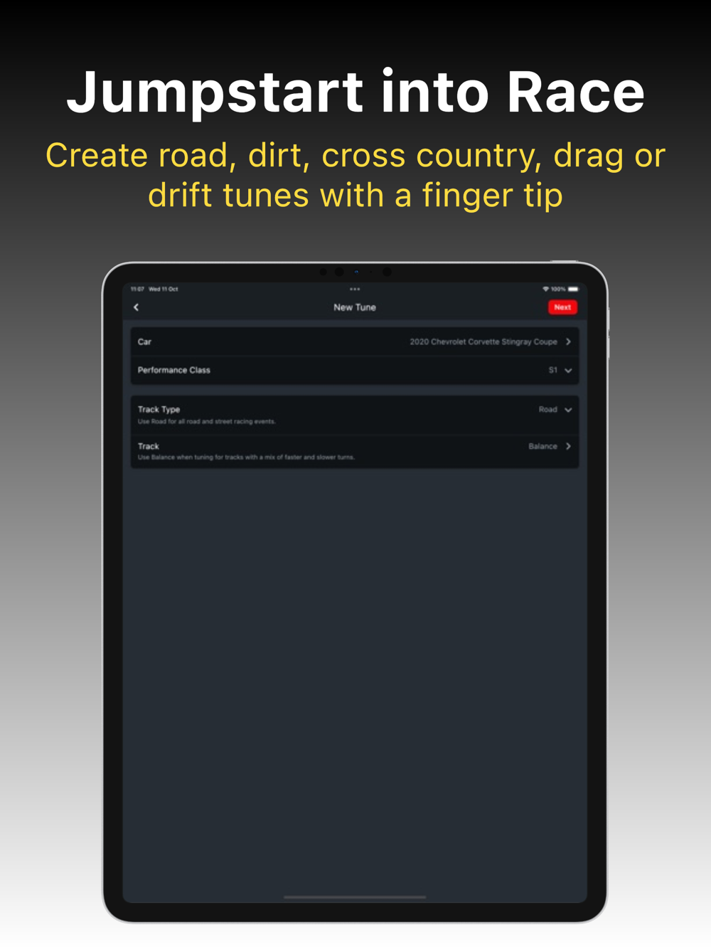 - Create road, dirt, cross country, drift and drag tunes with a finger tip