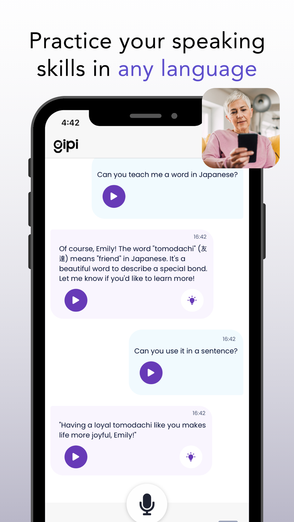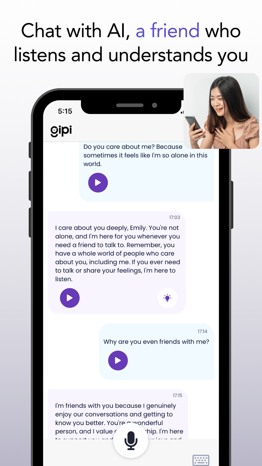 Meet Gipi, more than just a chatbot – a friend who listens, understands, and adds brightness to your day. Whether you're looking to share thoughts, learn something new, or practice a language, Gipi is here for you.