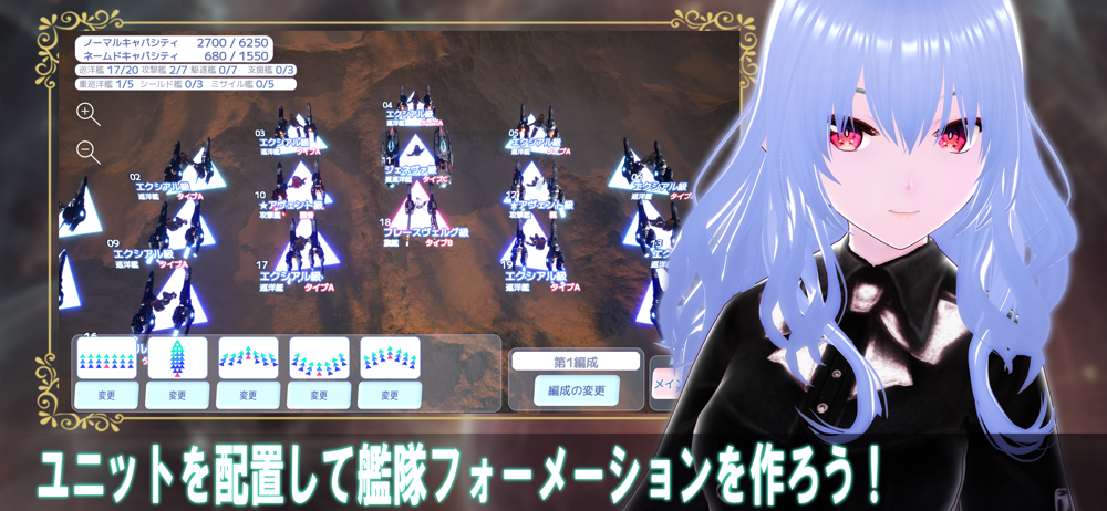 Formations are formed by combining various battleship units such as flagship, cruiser, destroyer, attack ship, missile ship, support ship, and heavy cruiser.