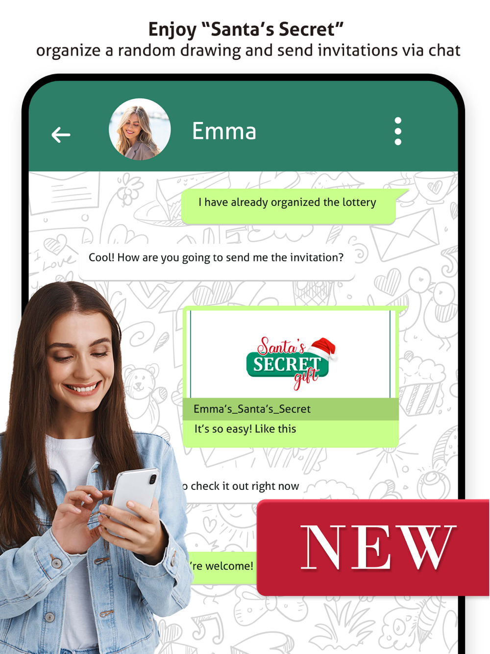 This App has two game versions. The simple one in which the names of the participants are entered and a name is assigned to each of them and the online version where the organizer enters the names of the group members, the date the gifts will be delivered and the budget. The same organizer can invite other members by sharing the link to the game through social media. Once they have joined, the drawing will start and finally they will each receive a notification with the name of their secret santa and the rest of the details.