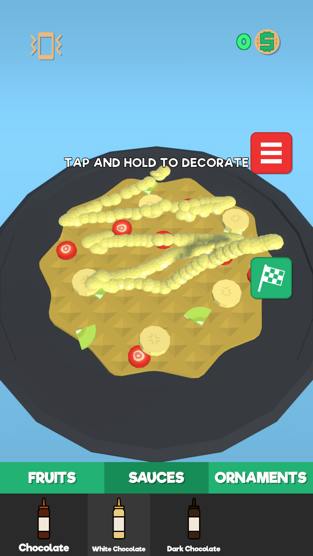 Decide a waffle type and draw a circle to mix ingredients, pour it on the right shape of waffle machine and then cook it! And the rest is all up to your imagination, give it your best! Pick an item and design the best waffle in town!