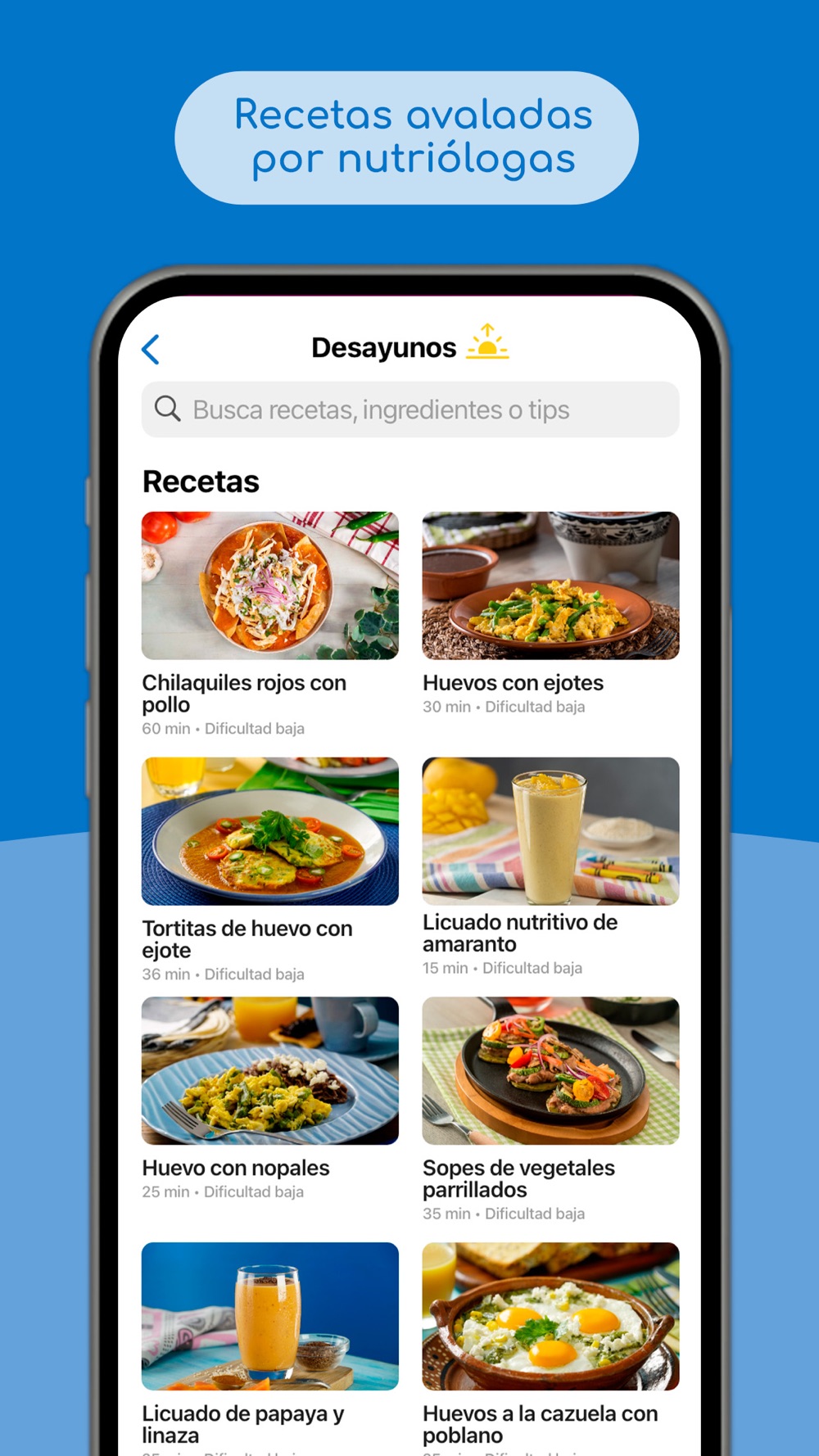 En DiabetesPal podrás encontrar recetas saludables para desayunar, comer, cenar y acompañar tus alimentos, acompañados de videos o fotografías, información nutrimental y herramientas útiles como temporizador, convertidor de medidas y la posibilidad de ver o escuchar las recetas sin tocar tu celular.