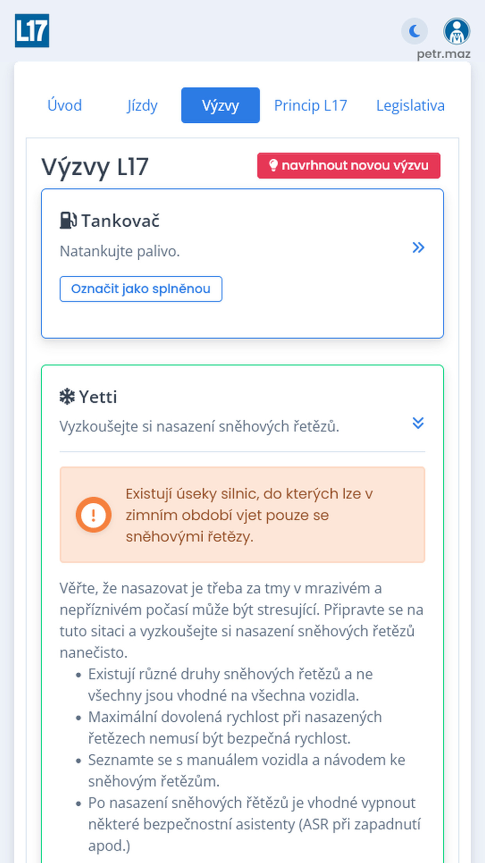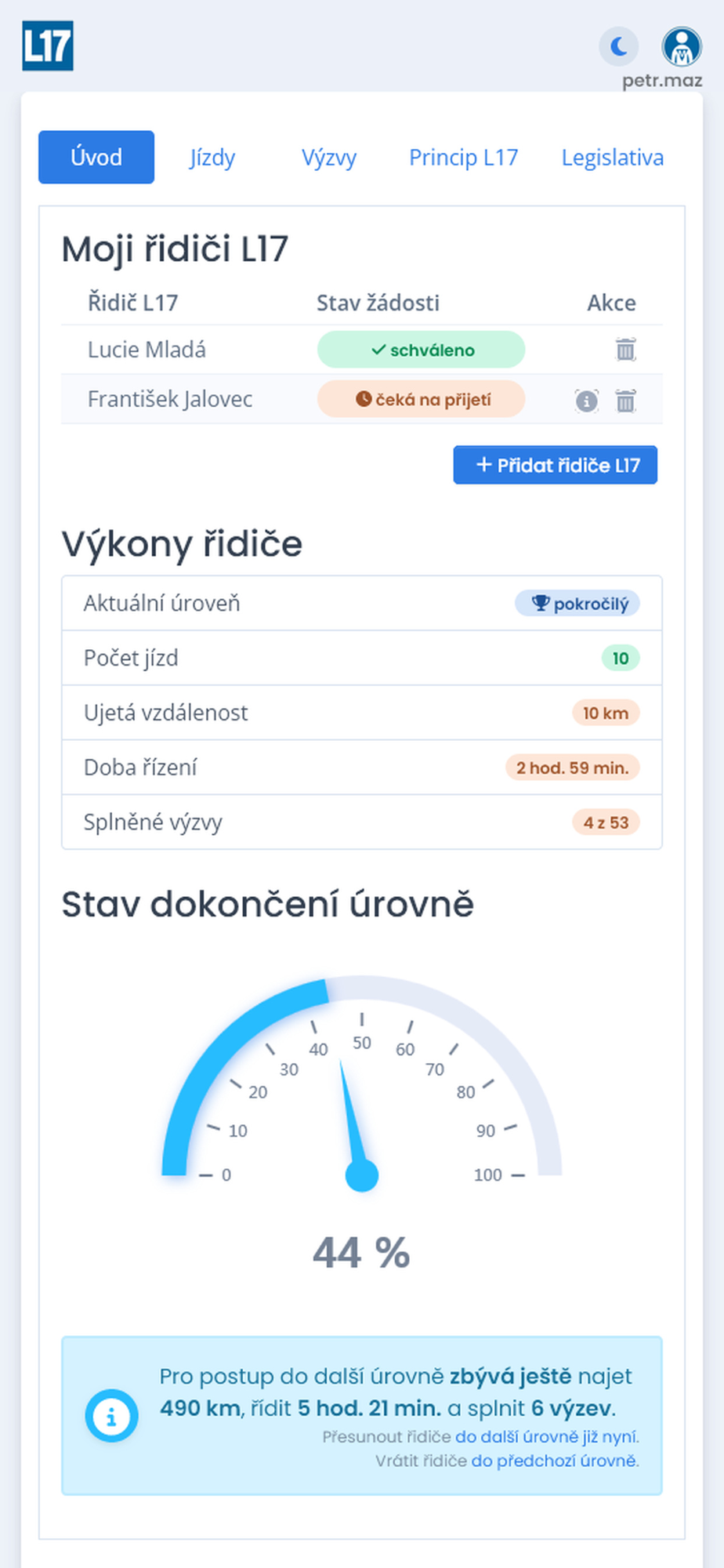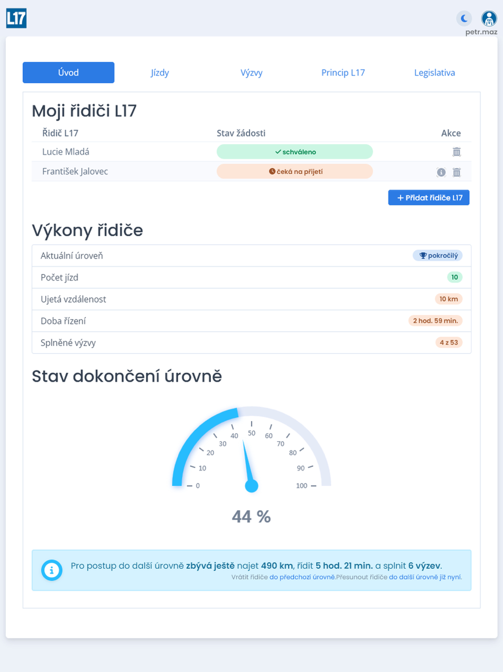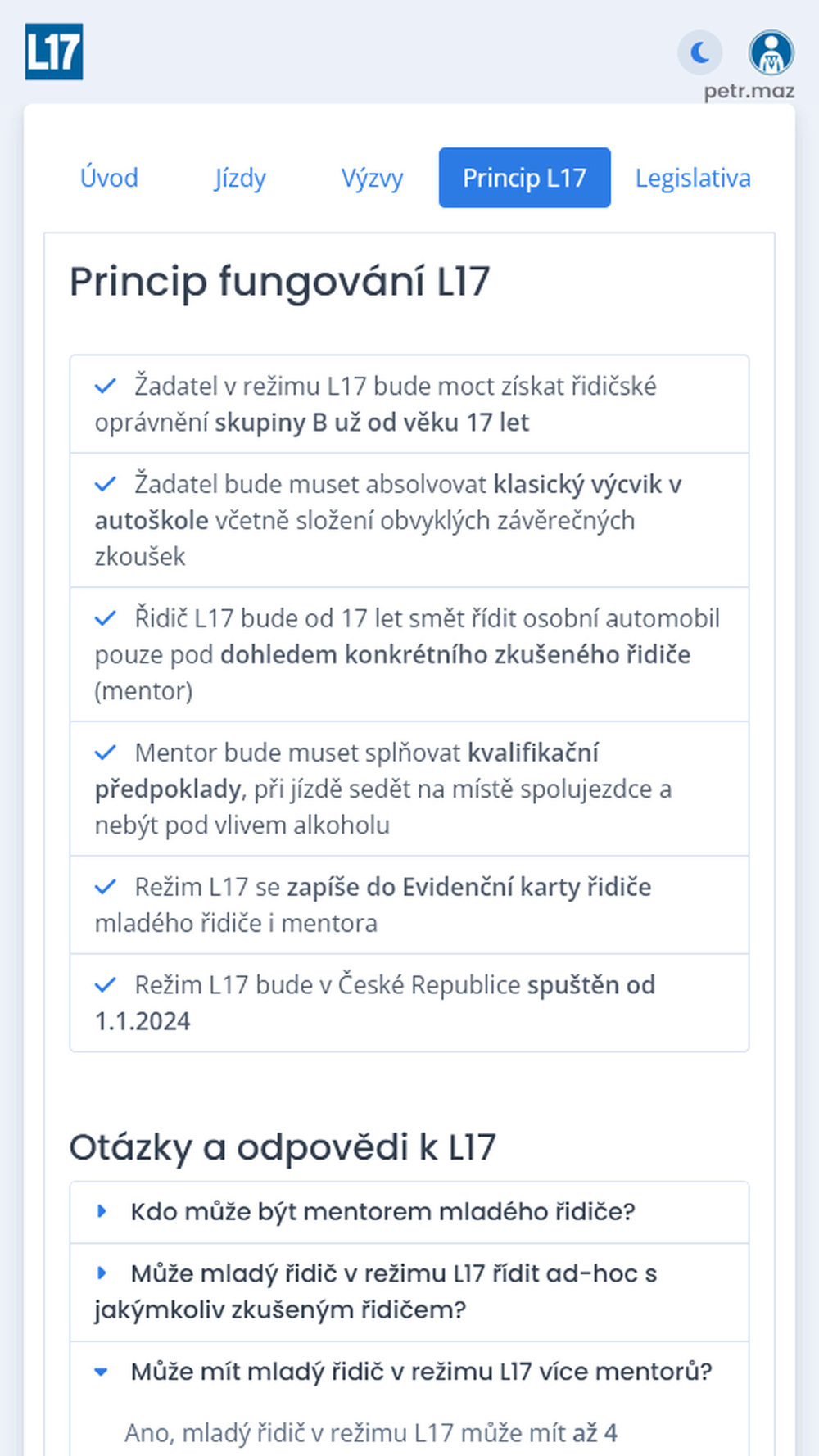 Aplikace slouží jako zdroj informací a průvodce k režimu L17, v rámci kterého smí řidiči ve věku 17 let řídit osobní automobil pod dohledem předem stanoveného zkušeného řidiče - mentora.